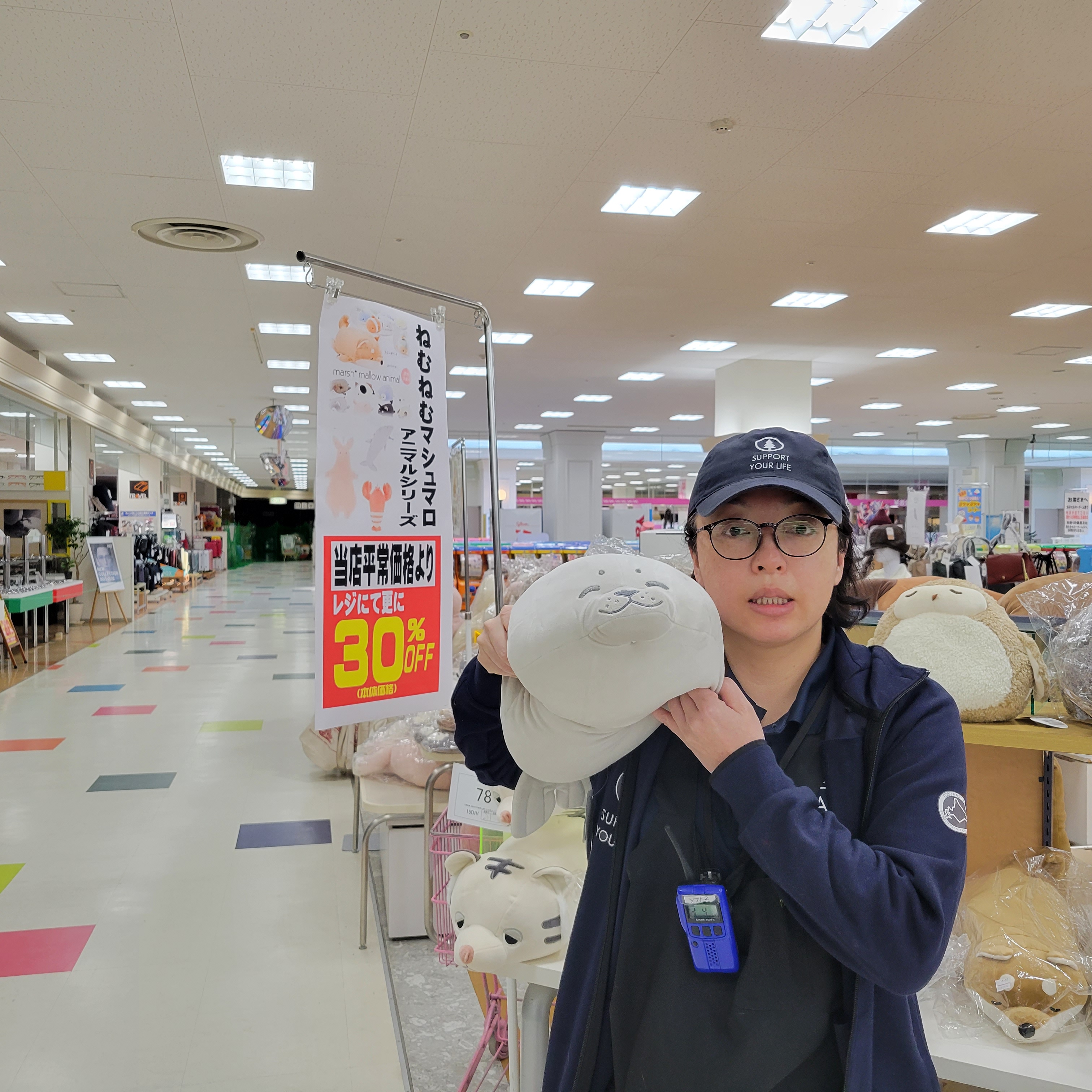 インテリアコーナーからは、マシュマロみたいな なむねむマシュマロアニマルクッションです。価格は3割引にて販売中です。是非お買い求めくださいませ。
