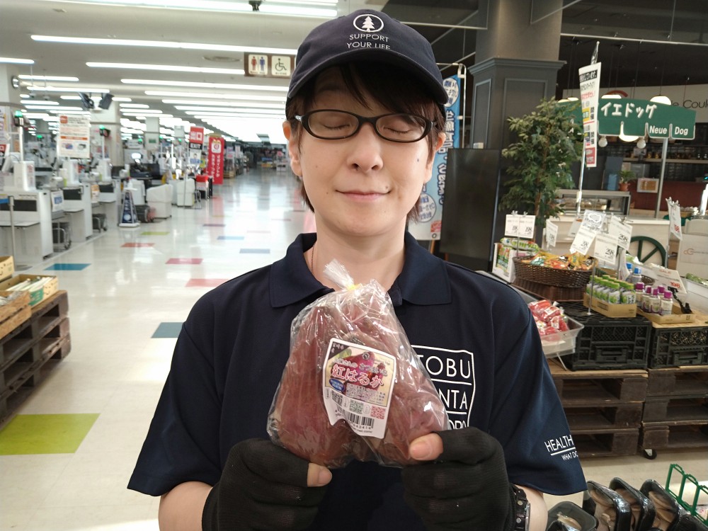 おはようございます。青果コーナーでは、宮崎産久保さんの紅はるか1袋398円(本体価格)にて販売しております。しっとり系の濃く甘いさつまいもです。焼き芋にいかがでしょうか。どうぞお試しください。