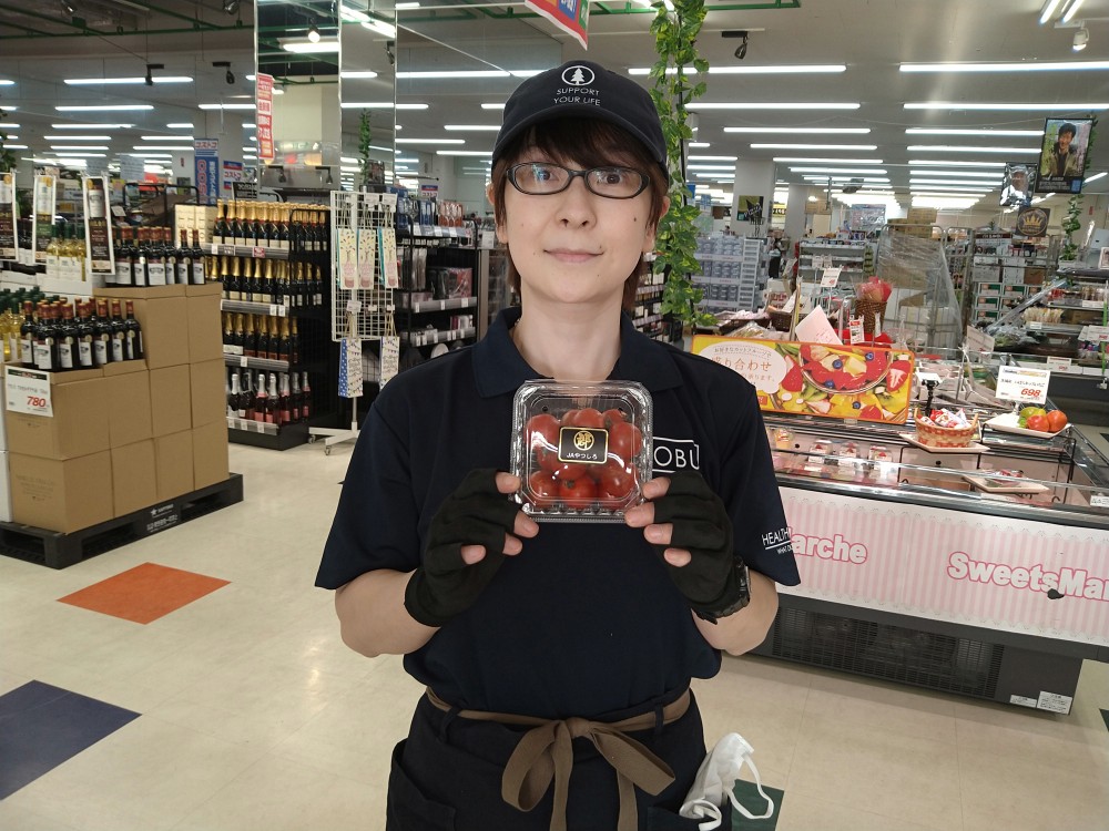 おはようございます。青果コーナーでは、熊本産他ミニとまと1パック188円(本体価格)にて販売しております。サラダや、料理の彩りにいかがでしょうか。
