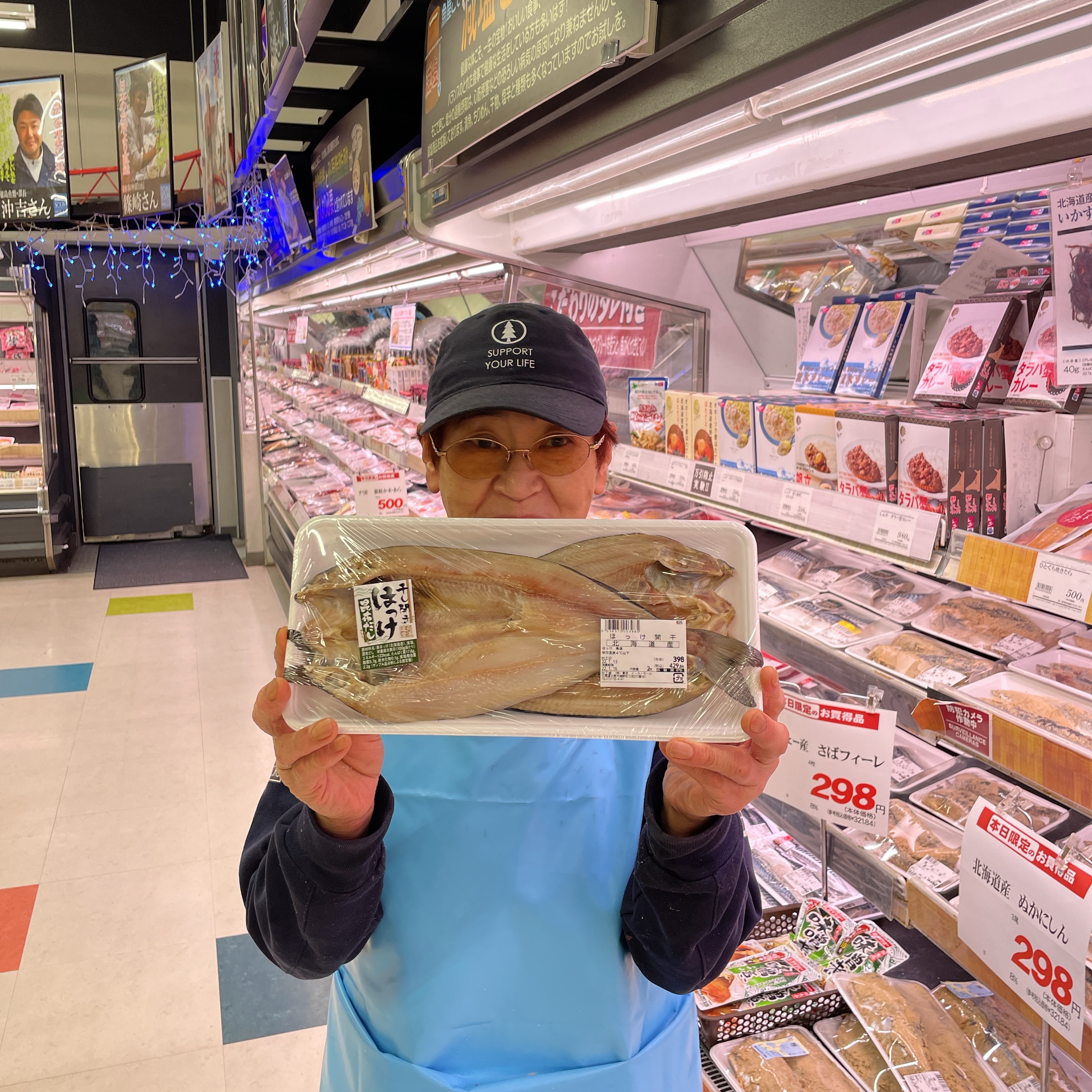 本日の鮮魚コーナーからのおすすめです。 北海道産開きほっけ2枚498円(税抜)となっております。是非ご来店お待ちしております