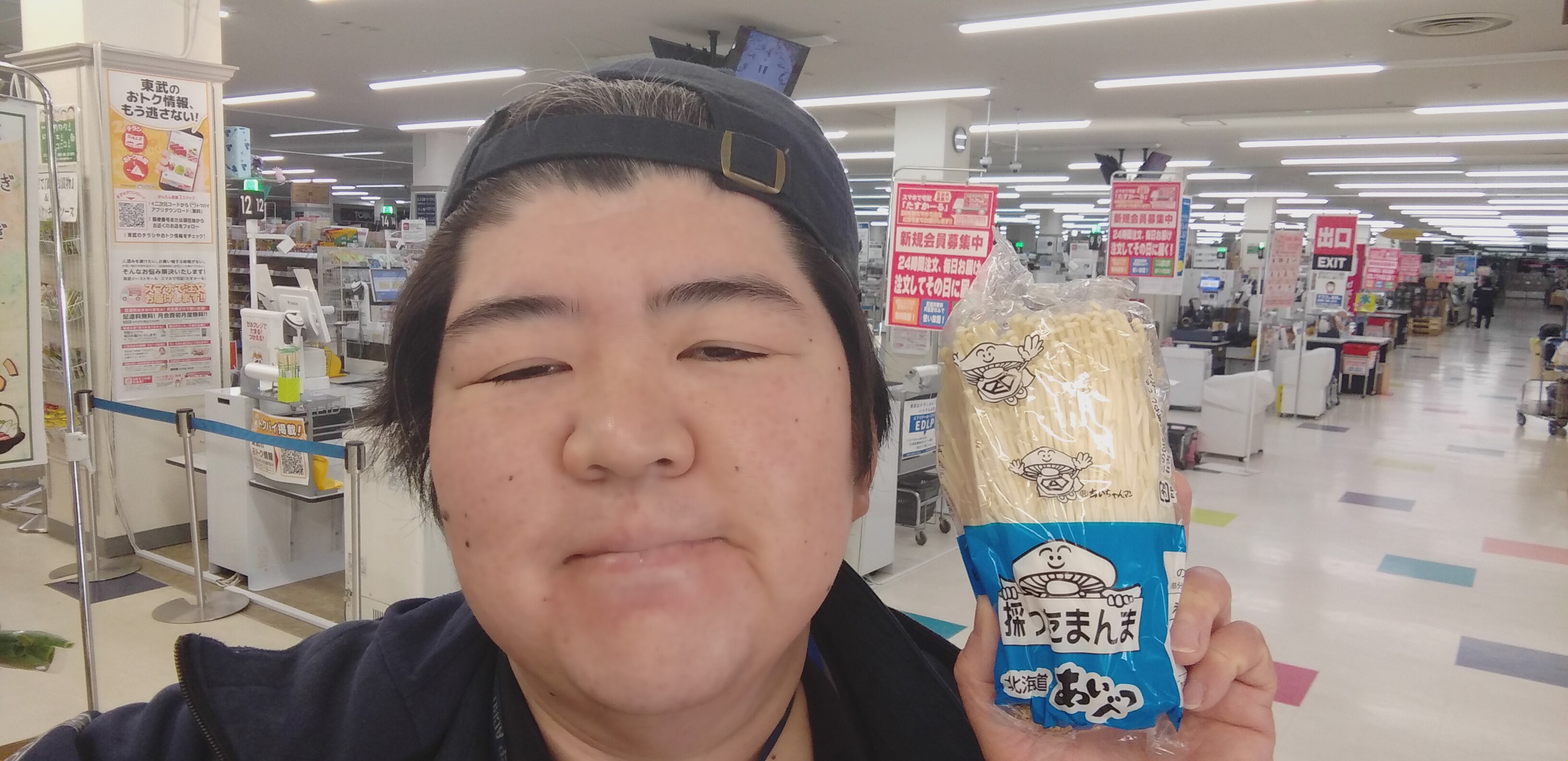 おはようございます。青果担当奥瀬です。本日のオススメは、北海道産他えのき茸。1袋99円です。様々な料理に使える万能野菜。是非ご利用くださいませ。