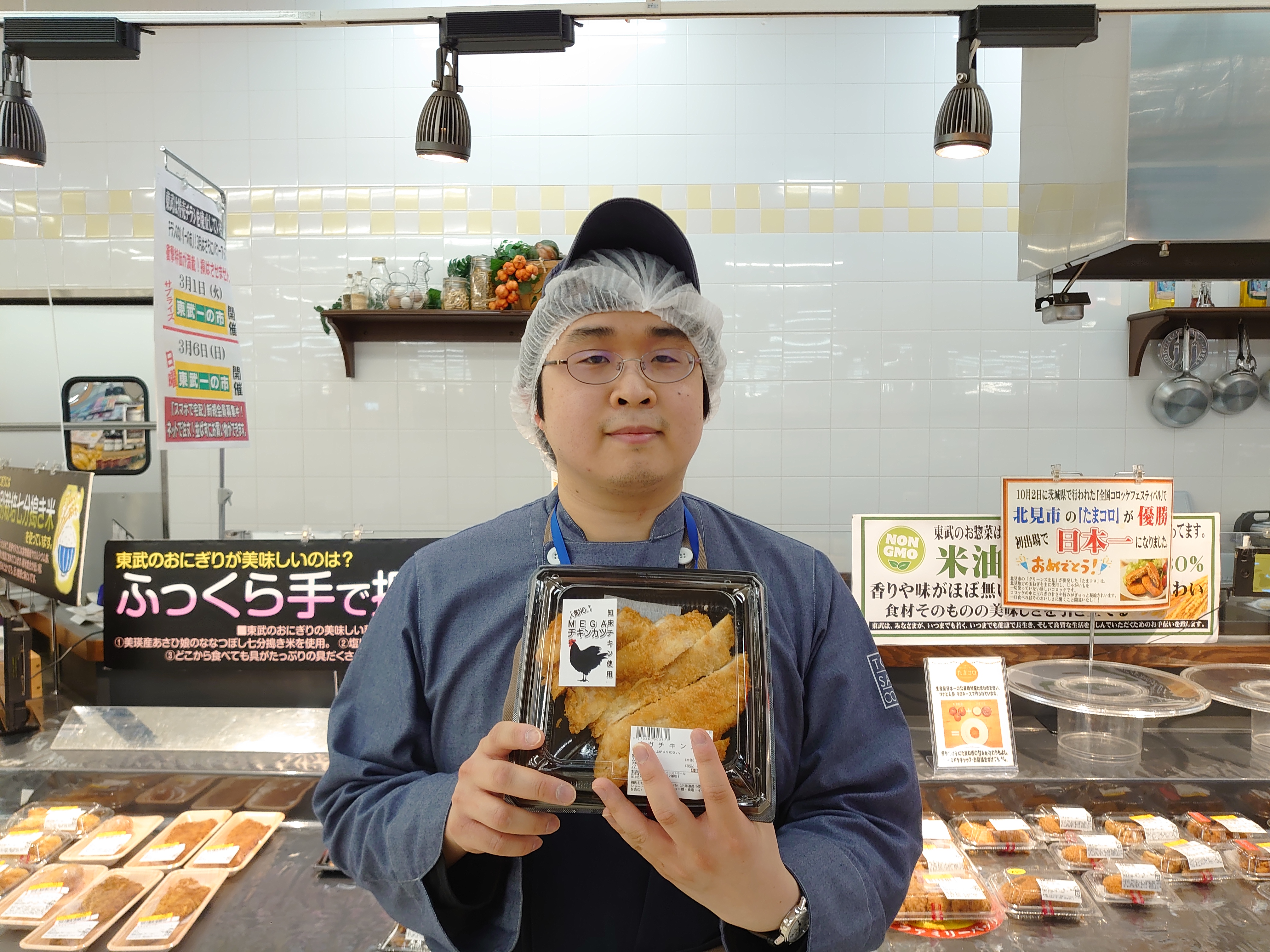おはようございます。惣菜担当小川です。知床若鶏と自然の味生パン粉を使用してます。当店人気No.1商品です。
