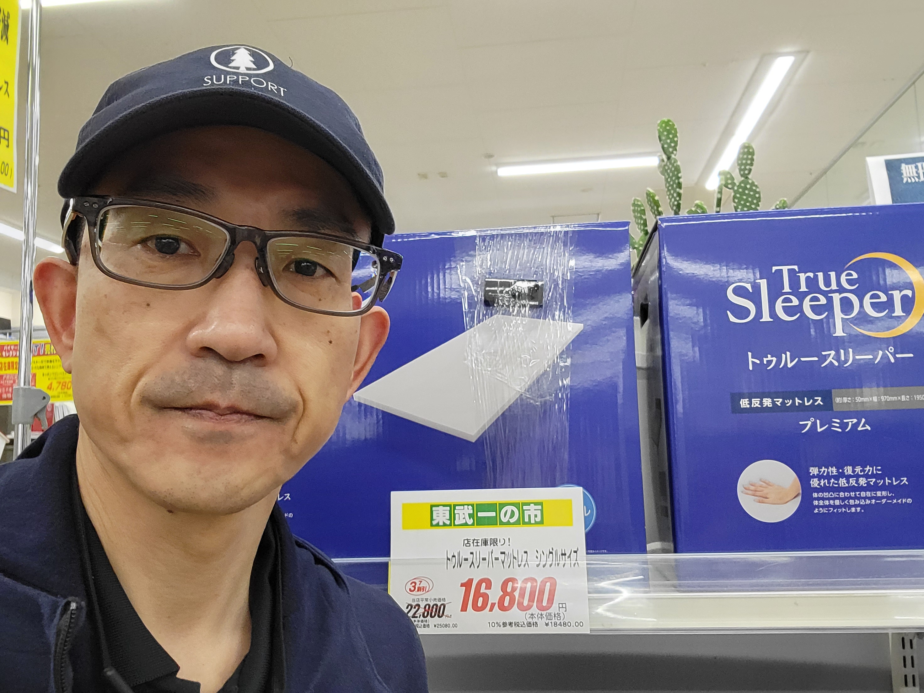 インテリアコーナーからは、人気のトゥルースリーパー マットレスシングルサイズです。弾力性、復元力に優れた低反発マットレスです。価格は16800円です。是非お買い求めくださいませ。