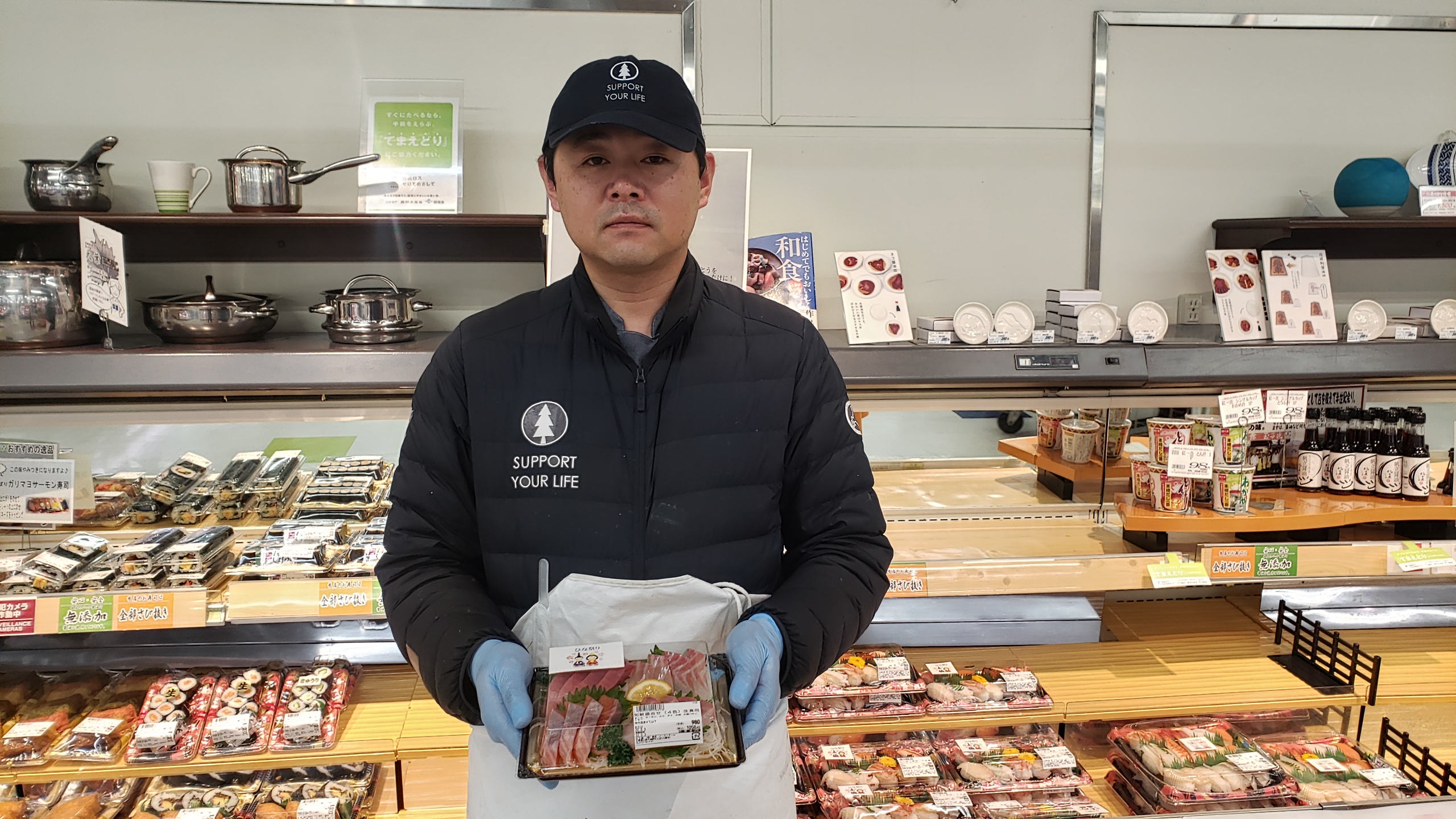 鮮魚コーナーのおすすめ!ひな祭りは、お子様に人気のまぐろ、サーモンの入った旬鮮盛合せ4色980円。新鮮な生ネタを使用しております。