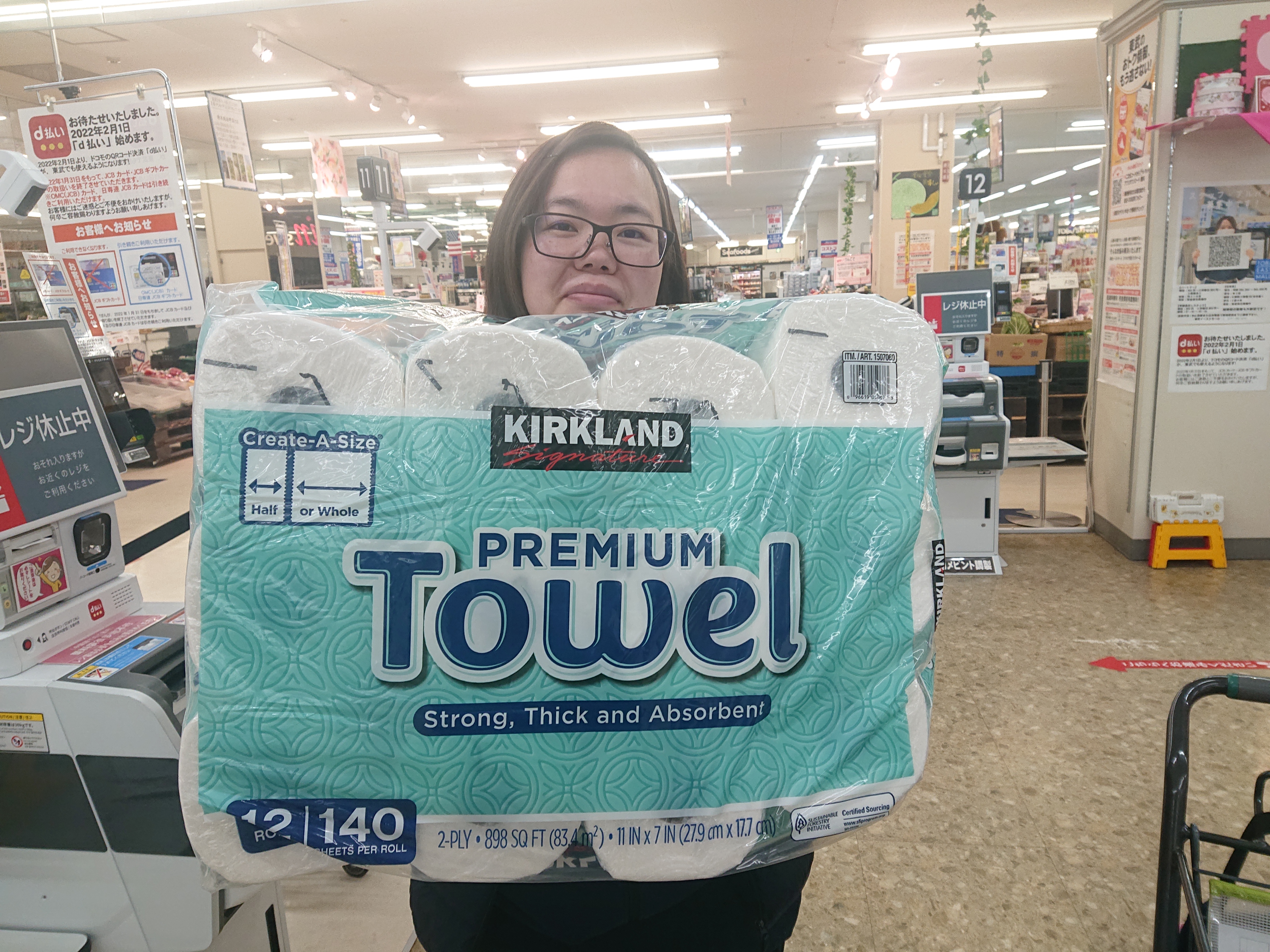 おはようございます。家庭消耗品担当小西です。本日のおすすめ商品は、カークランドシグネチャーキッチンタオルです。厚手なので色んなシーンに大活躍します。