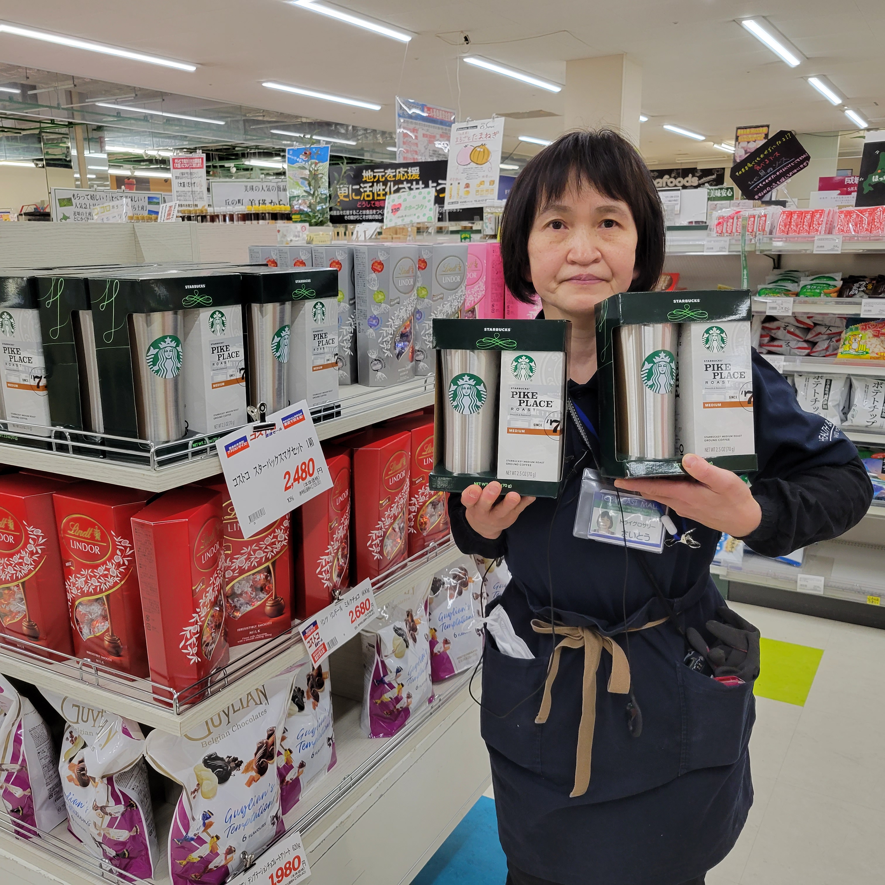 食品コーナーからは、本日コストコフェア!コストコ スターバックス マグセットです。スターバックスのロゴ入りのステンレスタンブラーとすぐに飲めますコーヒー70g入りで価格は2480円です。是非お買い求めくださいませ。