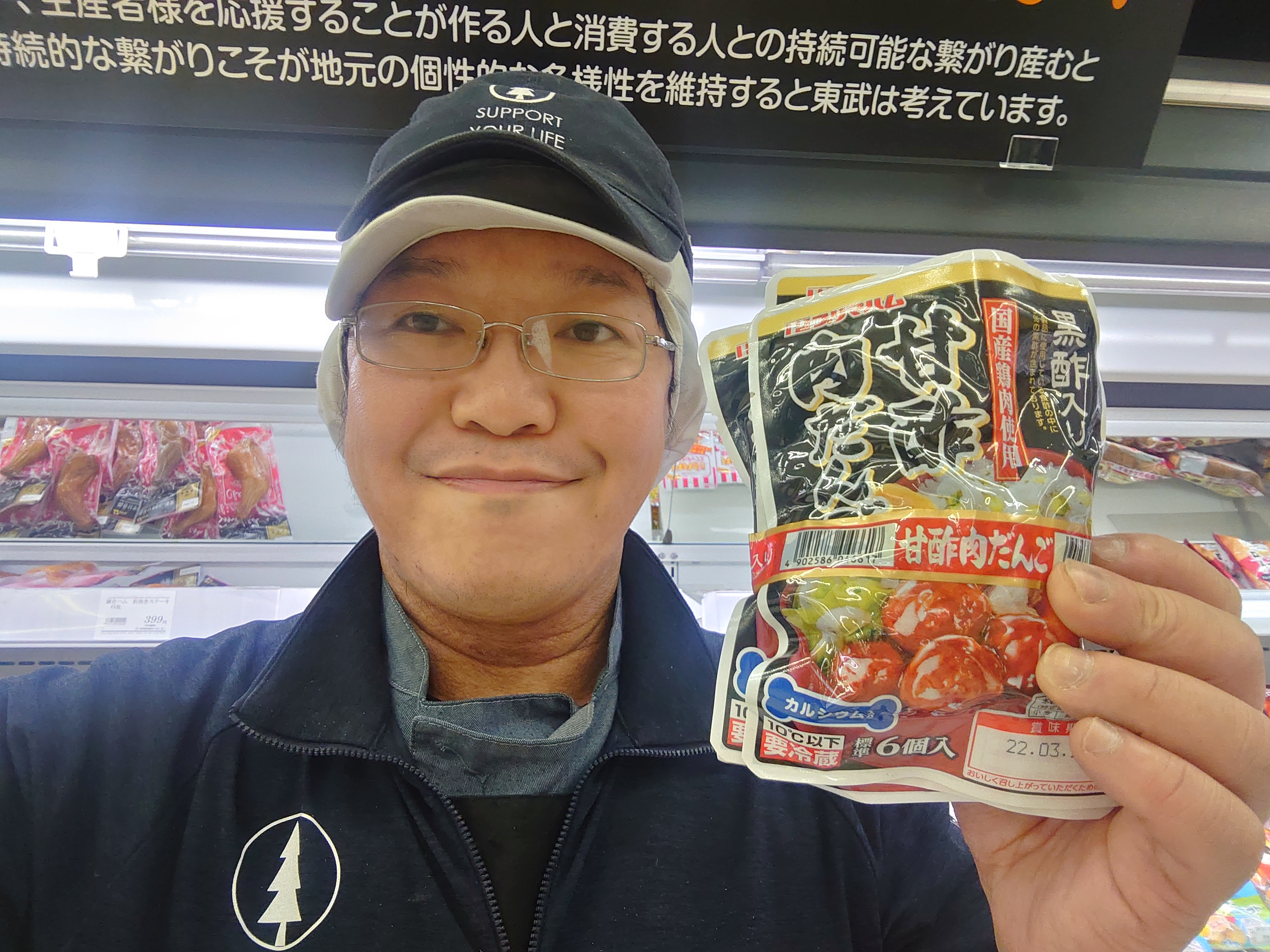 おはようございます。ミート担当近藤です。国産鶏肉を使い、黒酢入りの甘酢ソースで仕上げました。お弁当にぴったりな、3個束のお買得な商品です。