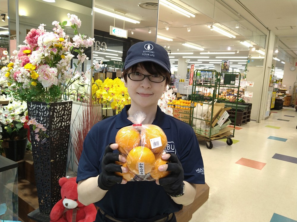 おはようございます。青果コーナーでは、和歌山産清見オレンジ6個入り1袋498円(本体価格)にて販売しております。オレンジと冬みかんを掛け合わせた味わいです。どうぞ御賞味ください。