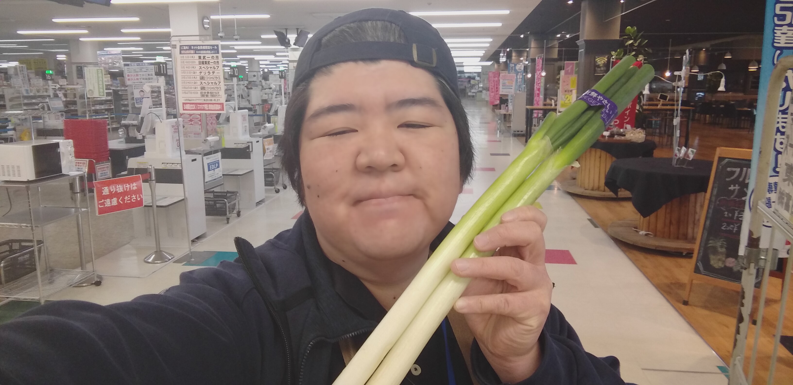 おはようございます。青果担当奥瀬です。本日の青果コーナーからのオススメは、茨城産他の長ねぎです。1束199円となっております。是非ご利用くださいませ。