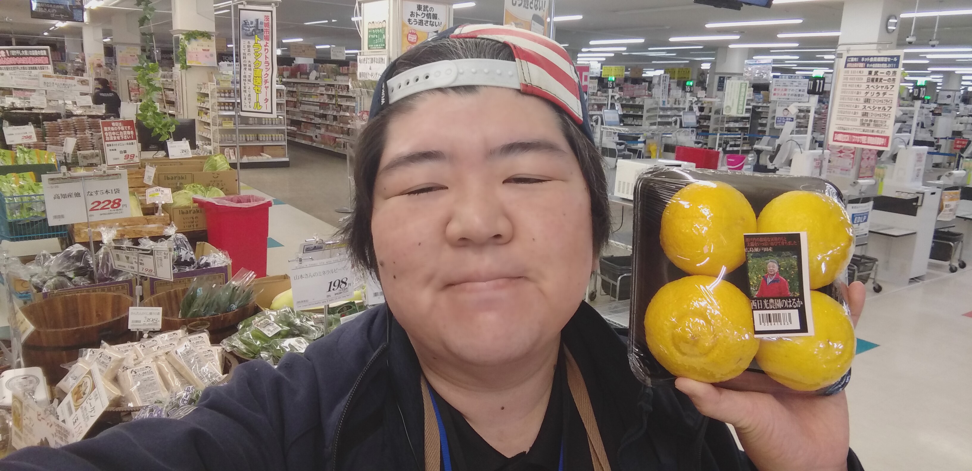 おはようございます。青果担当奥瀬です。本日の青果コーナーからのオススメは、果物です。フルーツよりどり2点で950円の特売開催中。みかん1袋、広島産の柑橘、アメリカ産の王様のオレンジ、フィリピン産パイン、チリ産ぶどう、茨城産いちご、青森産りんご4個入り袋等、よりどり2点で950円。写真は広島産はるか。是非ご利用くださいませ。