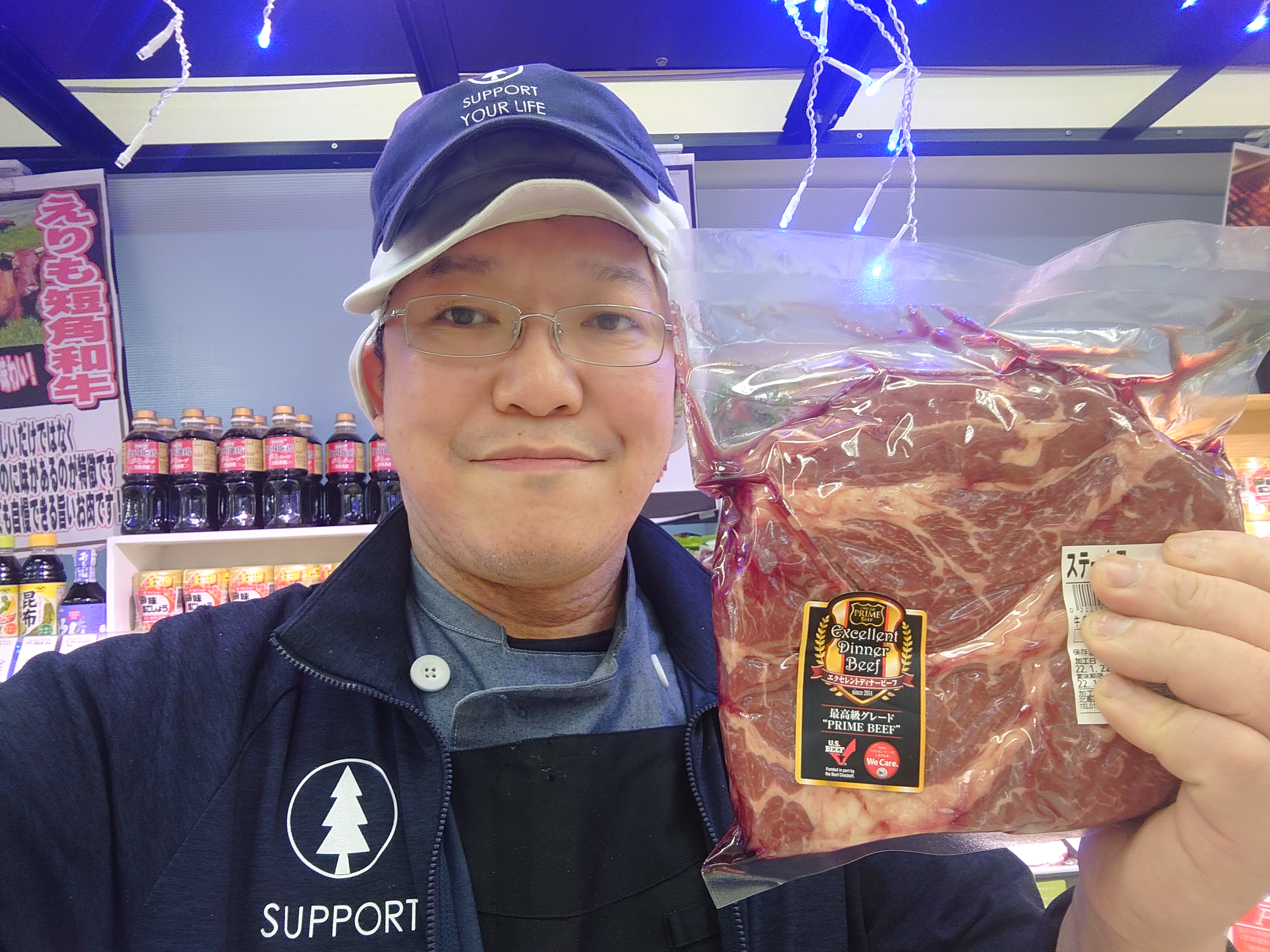 おはようございます。ミート担当近藤です。ガッツリ食べ応えバッグン!厚切りステーキです!
