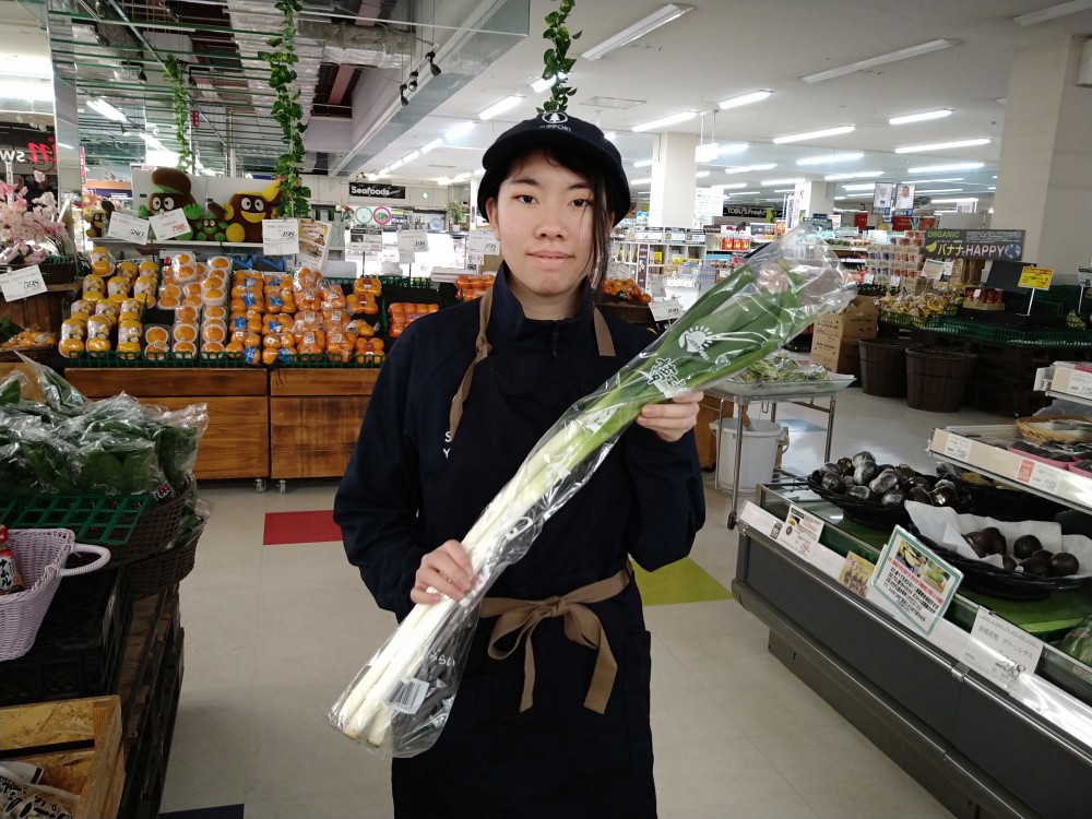 おはようございます。青果コーナーでは、北見産春長ねぎ1袋198円(本体価格)にて販売しております。こちらは今しか食べられない、柔らかい越冬ねぎです。どうぞ御賞味ください。