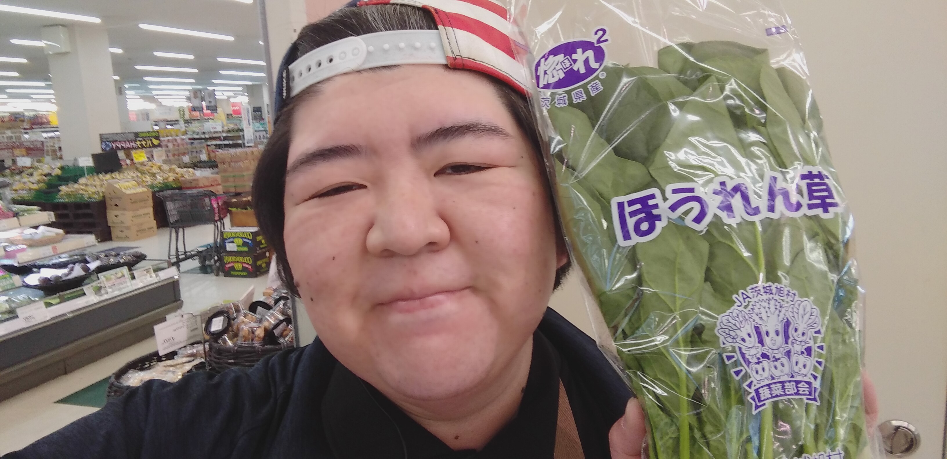 おはようございます。青果担当奥瀬です。本日のオススメはほうれん草です。1袋95円とお買い得です。是非ご利用くださいませ。