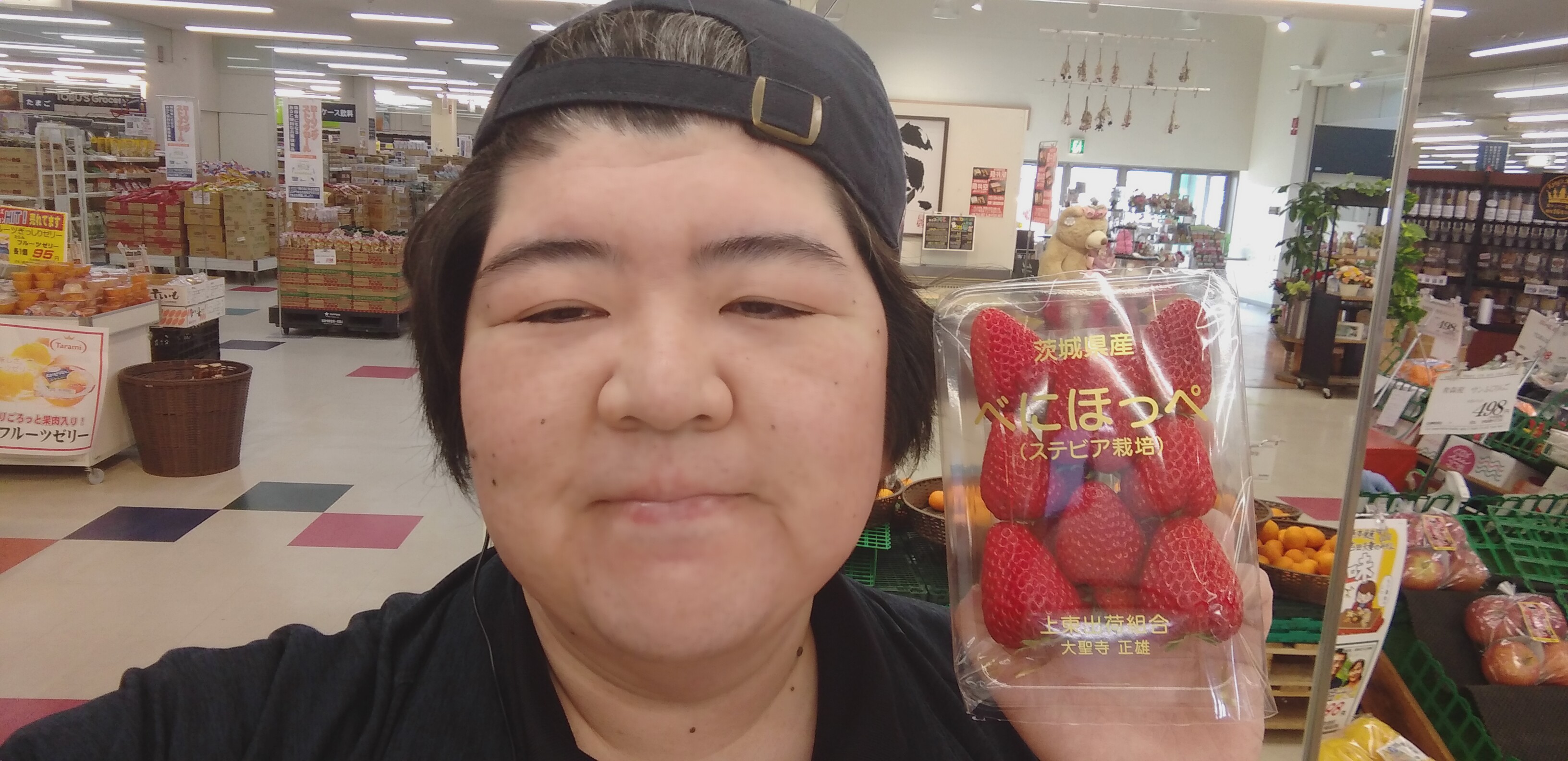 おはようございます。青果担当奥瀬です。本日は茨城直送セール。茨城からの直送品をお買い得価格でご提供致します。本日のオススメは茨城産の紅ほっぺいちご。直送セールではお馴染みの品です。何もつけなくても甘い、茨城産ステビア栽培紅ほっぺいちご。1パック399円とお買い得です。是非ご利用くださいませ。