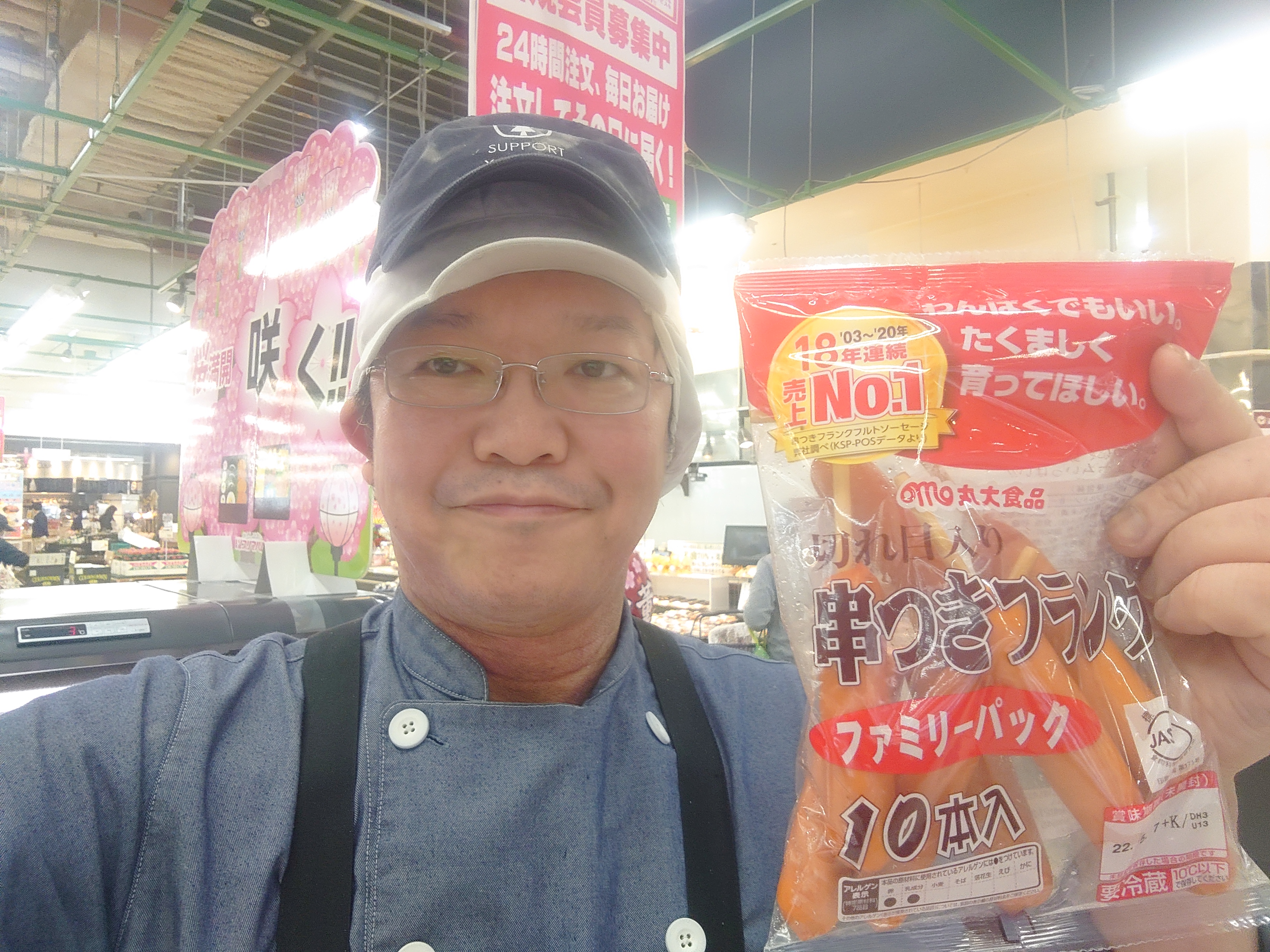 おはようございます。ミート担当近藤です。切れ目を入れ、串にさしたフランクフルトです。バーベキューや鉄板焼きにも便利にお使い頂けます。ファミリーやグループの集まりに最適な10本入りです。