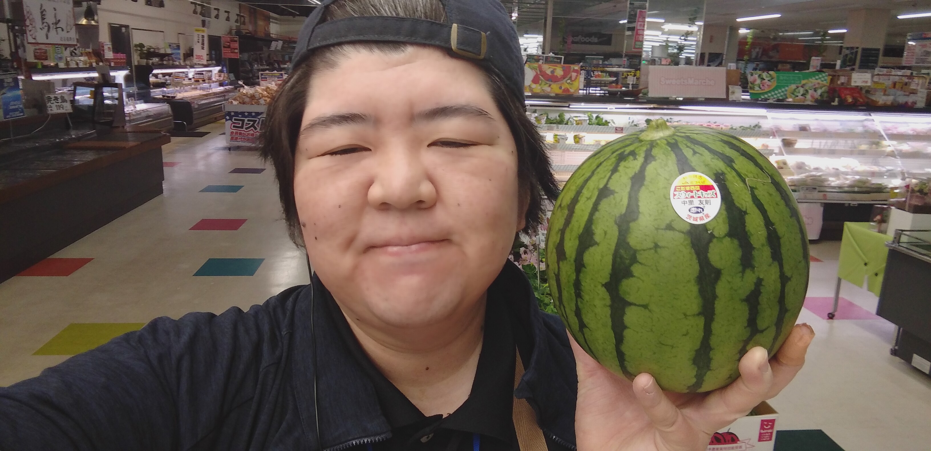 おはようございます。青果担当奥瀬です。本日は茨城直送セールです。茨城より新鮮な野菜、果物を入荷しております。本日のオススメは、茨城産小玉すいかです。あたたかい日はちょっと夏を先取りしませんか?1玉1280円です。是非ご利用くださいませ。