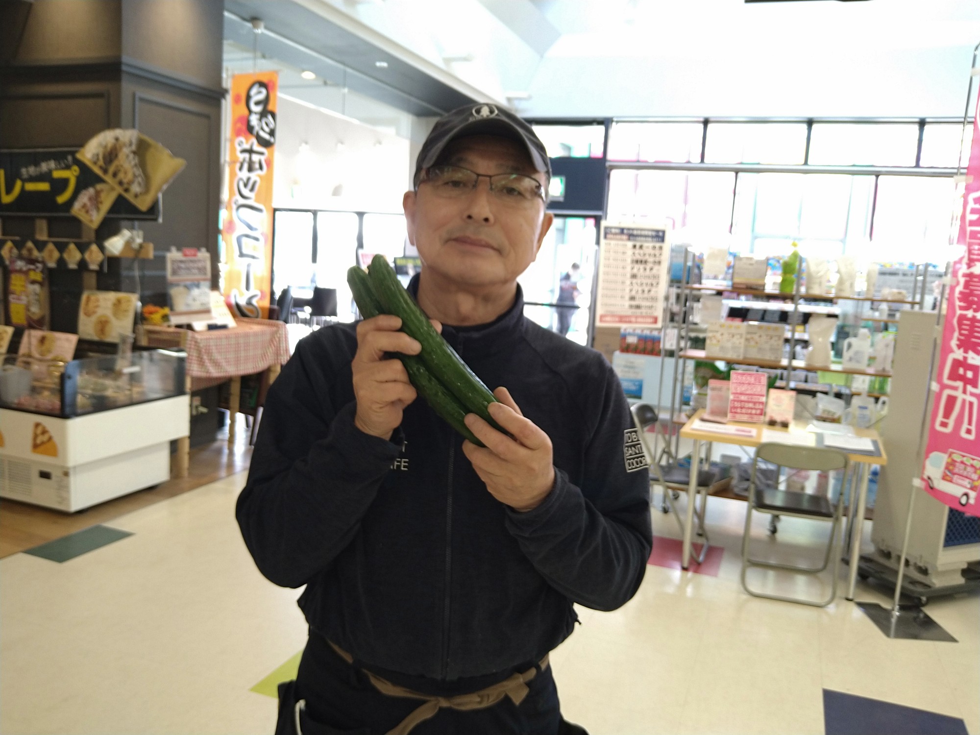 おはようございます。青果コーナーでは、茨城産きゅうり こちらはお一人様3点限りとなりますが、1本29円(本体価格)にて販売しております。浅漬け、たたききゅうり等にどうぞ御賞味ください。