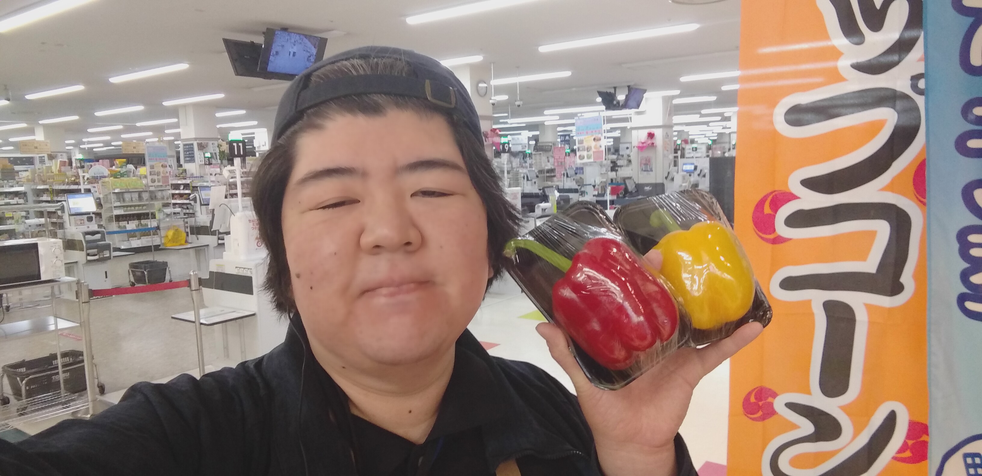 おはようございます。青果担当奥瀬です。本日のオススメは、釧路産のパプリカ。1玉250円です。サラダにいかがでしょうか。是非ご利用くださいませ。
