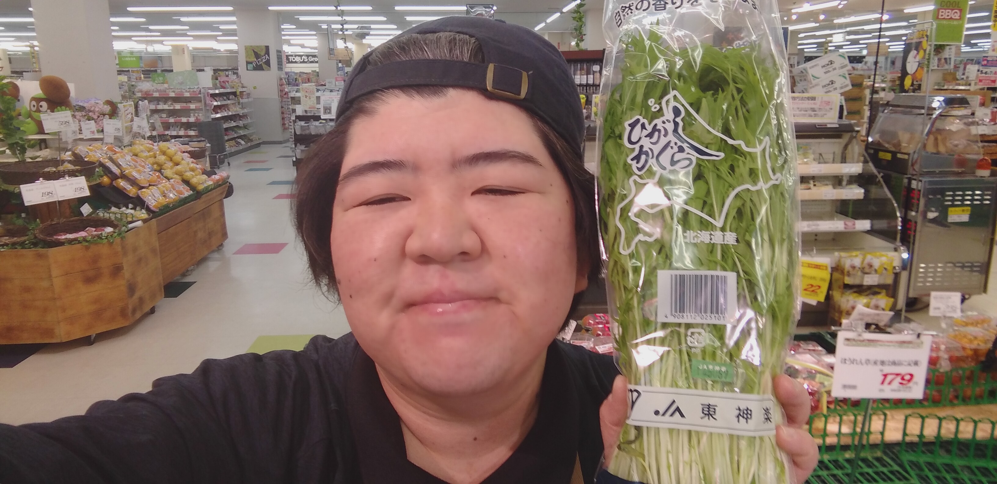 おはようございます。青果担当奥瀬です。本日の青果コーナーからのオススメは、東神楽産他みずなです。1袋99円とお買い得です。サラダなどににいかがでしょうか。是非ご利用くださいませ。