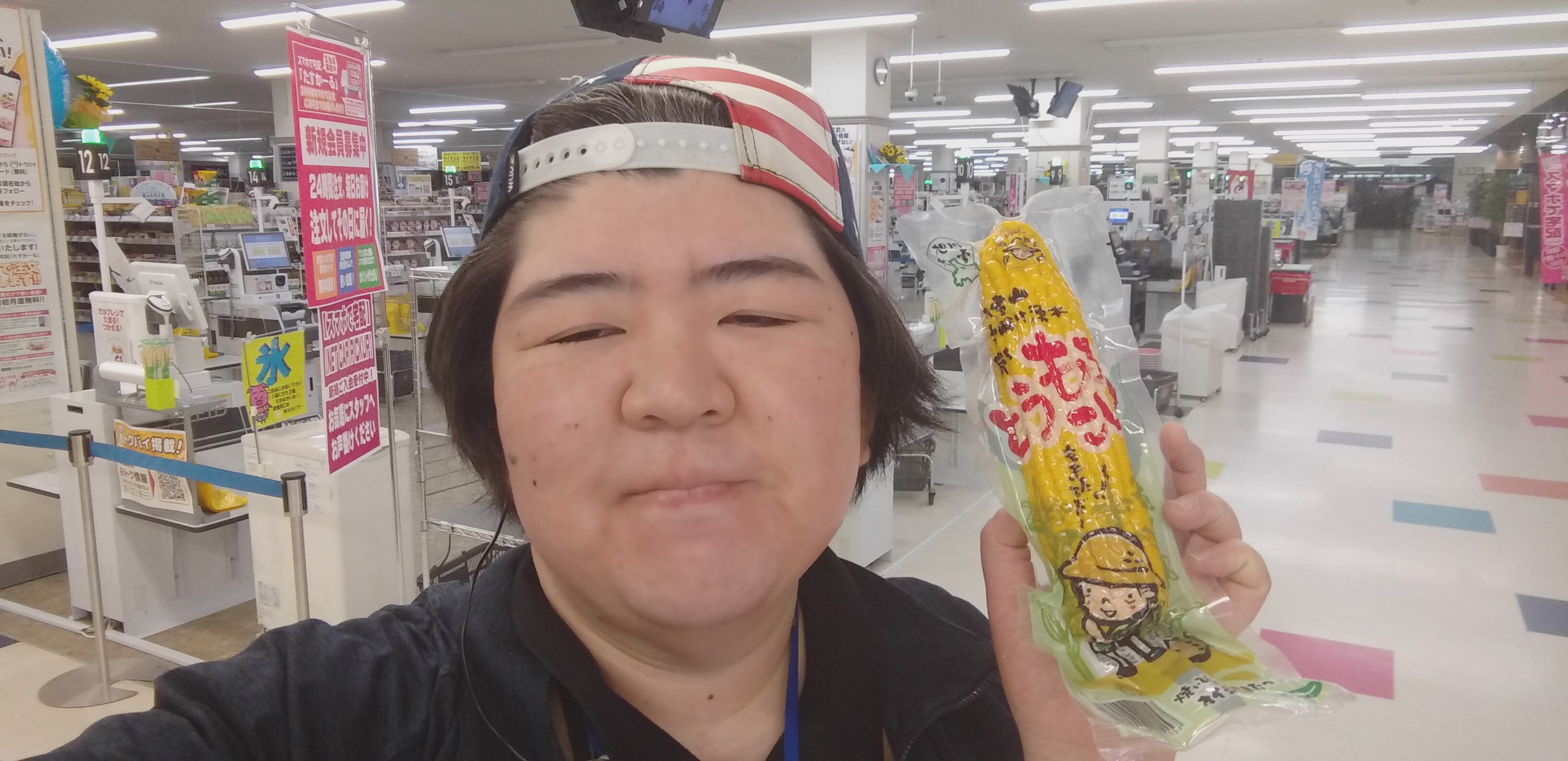 おはようございます。青果担当奥瀬です。本日のオススメは、北海道産レトルトコーン。1本298円。バーベキューにもオススメです。是非ご利用くださいませ。