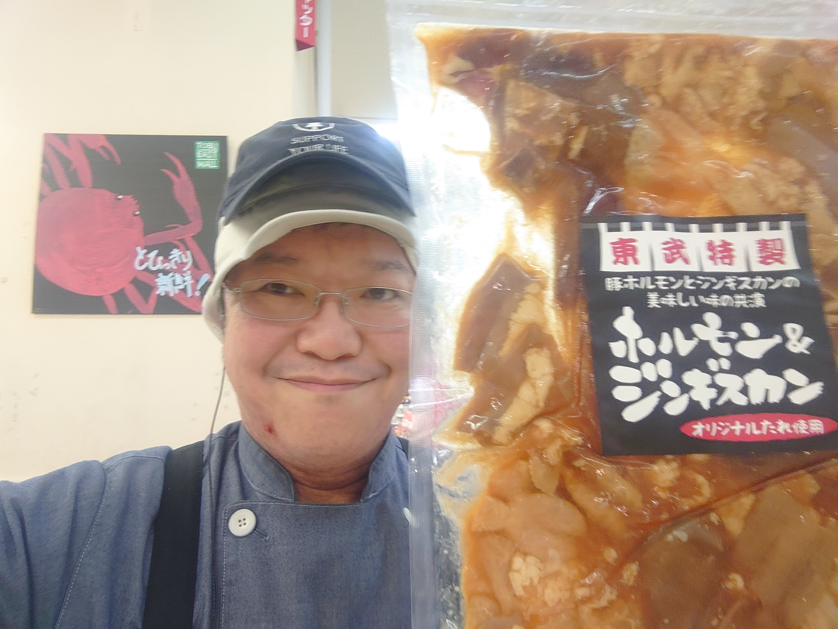 おはようございます。ミート担当近藤です。オリジナルのたれを使用、東武でしか買えない限定商品です。豚ホルモンとジンギスカンの美味しい夢の共演です。