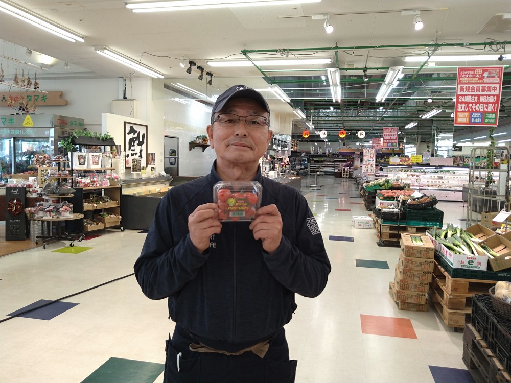 おはようございます。青果コーナーでは、愛知産ミニとまと1パック238円(本体価格)にて販売しております。サラダや天ぷら、冷やし中華にお使いいただけます。どうぞ御賞味ください。