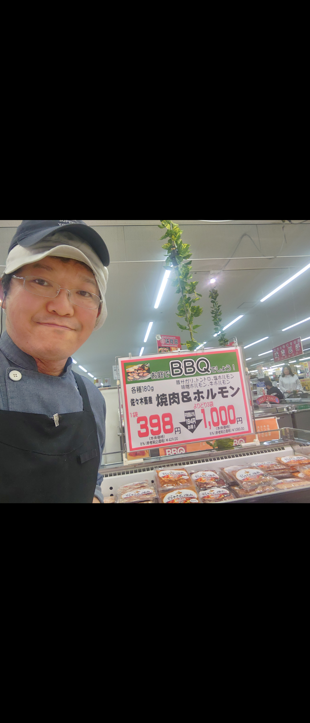 おはようございます。ミート担当近藤です。豚サガリ、トントロ、塩ホルモン、牛ホルモン、味噌ホルモンの五種類ありまして各種180g・一袋398円(本体価格)、よりどり3袋1000円(本体価格)です。今はバーベキュー、キャンプシーズンですのでご利用になっては如何でしょうか。
