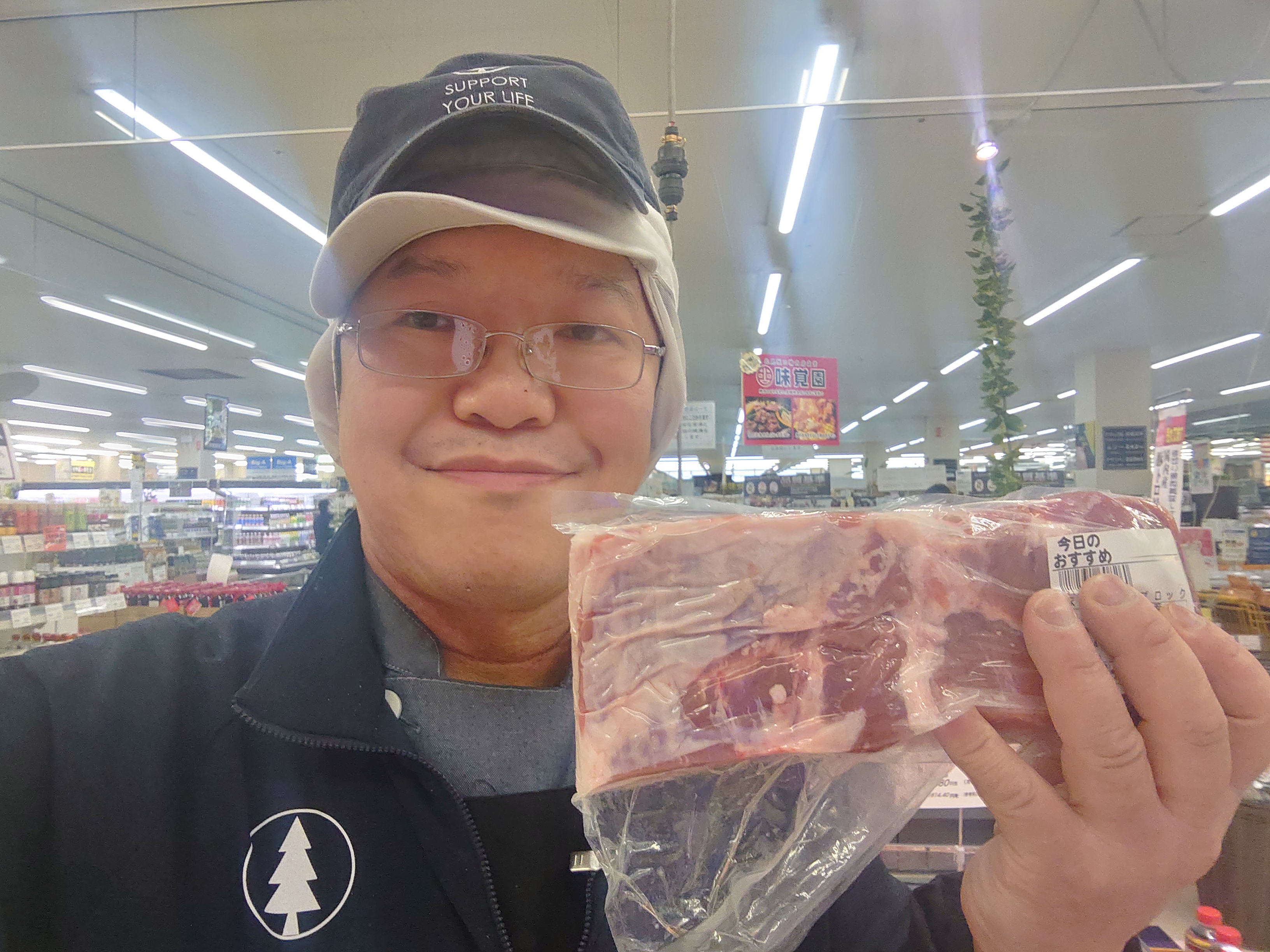 おはようございます。ミート担当近藤です。使用用途の一例と豚バラ肉ブロックのリンゴジュース浸け焼きでたまねぎとリンゴジュースに漬け込み肉を柔らかく焼き上げました。キャンプ飯やバーベキューにもおすすめです。