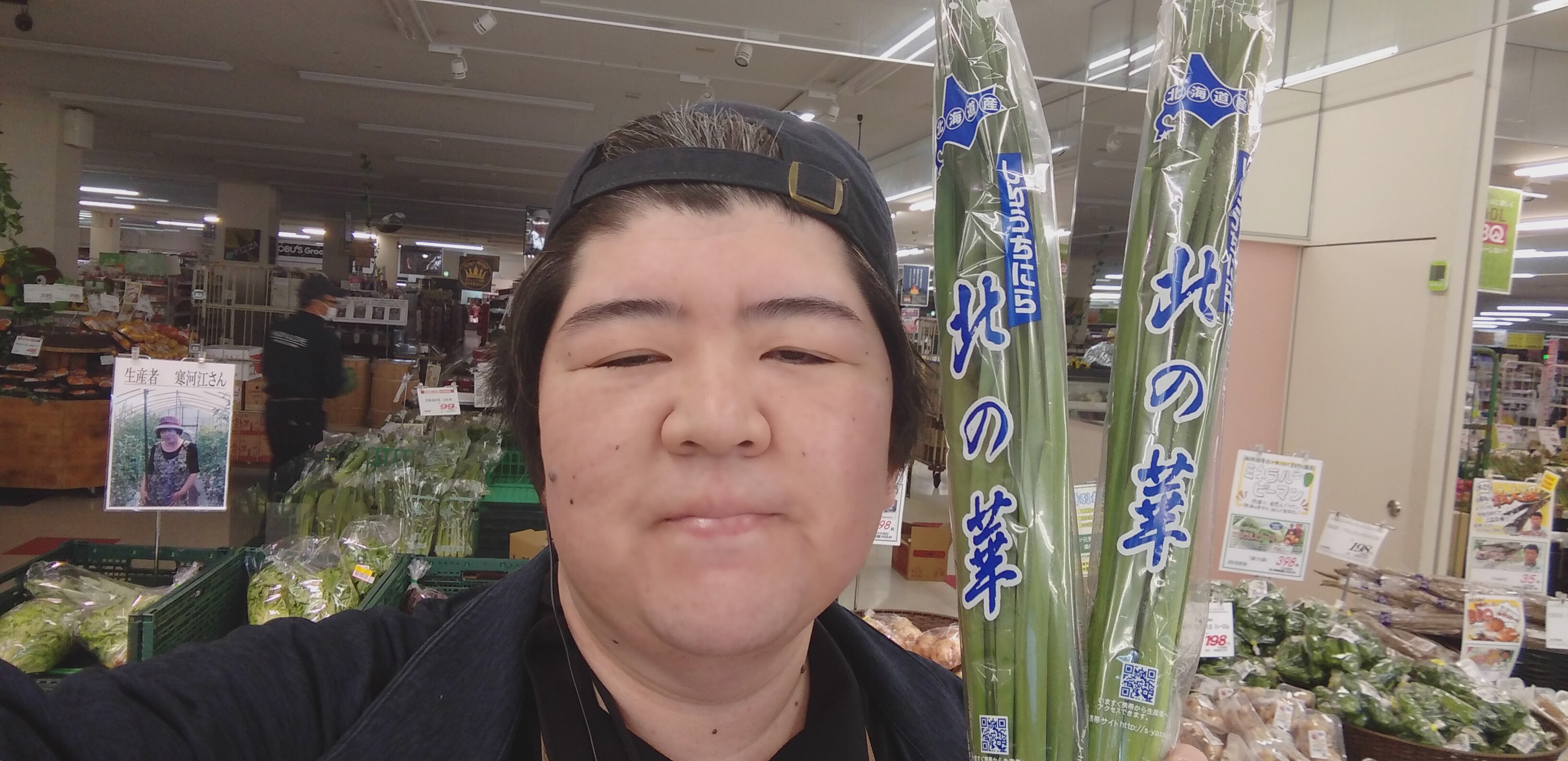 おはようございます。青果担当奥瀬です。本日の青果コーナーからのオススメは、北海道産のにら。1袋95円とお買い得です。是非ご利用くださいませ。