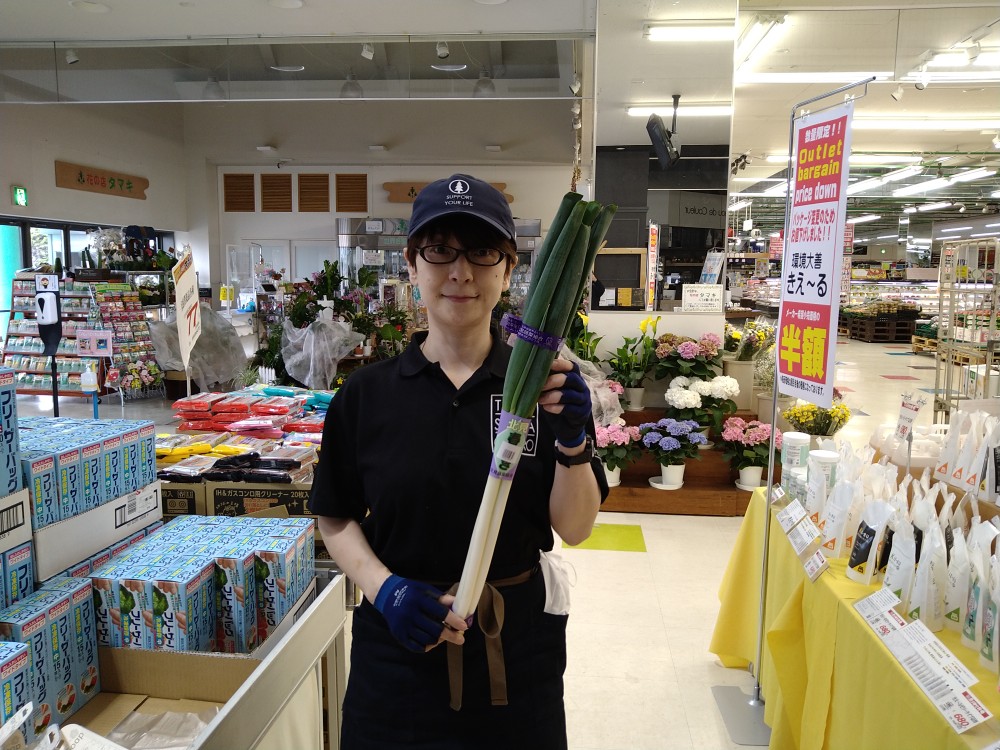 おはようございます。青果コーナーでは、北見産春ねぎ1束150円(本体価格)にて販売しております。通常のねぎより柔らかく色々な料理にお使いいただけます。どうぞ御賞味ください。