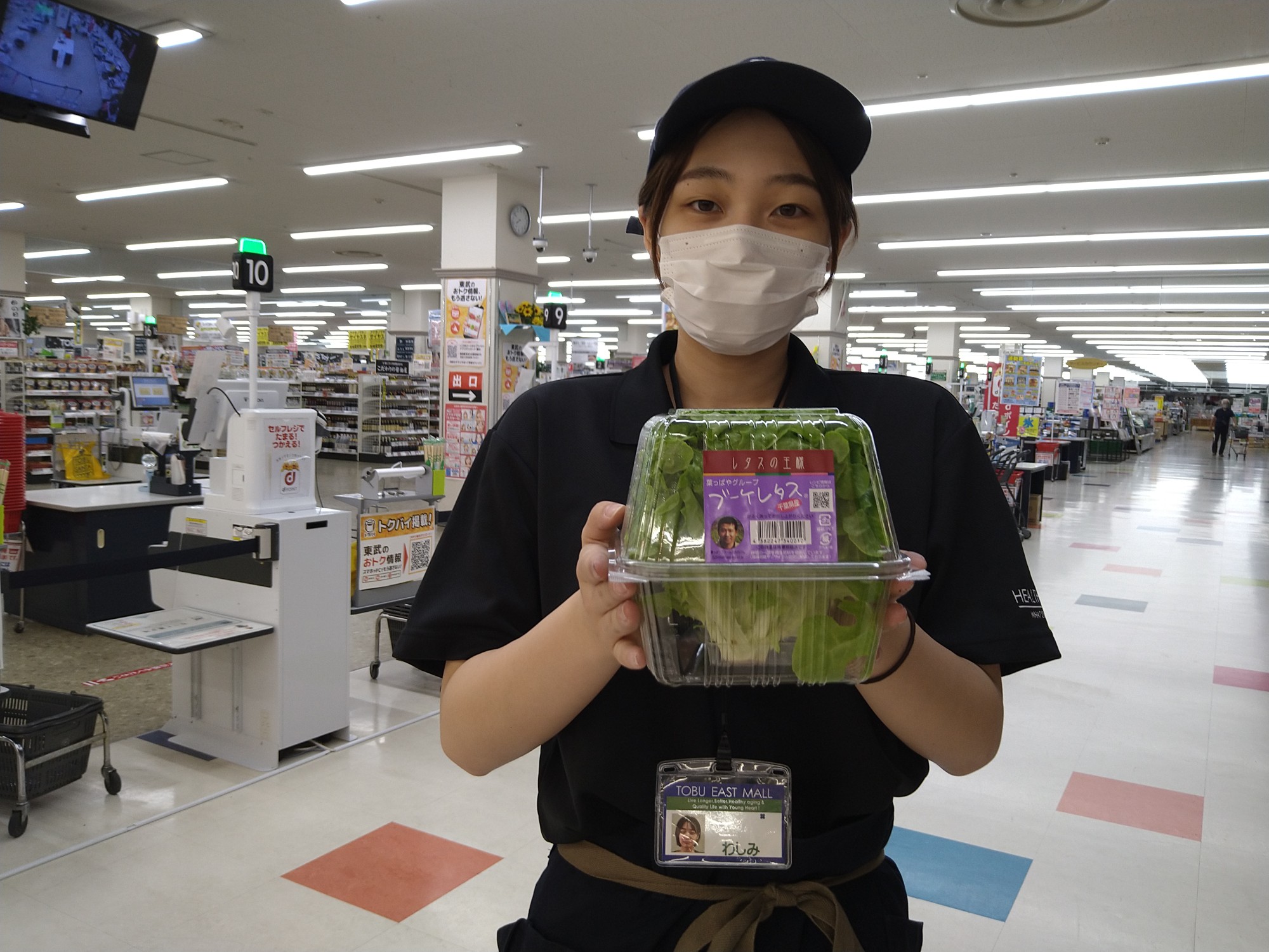 おはようございます。青果コーナーでは、千葉産ブーケレタス1パック198円(本体価格)にて販売しております。サラダや焼肉などにどうぞ御賞味ください。