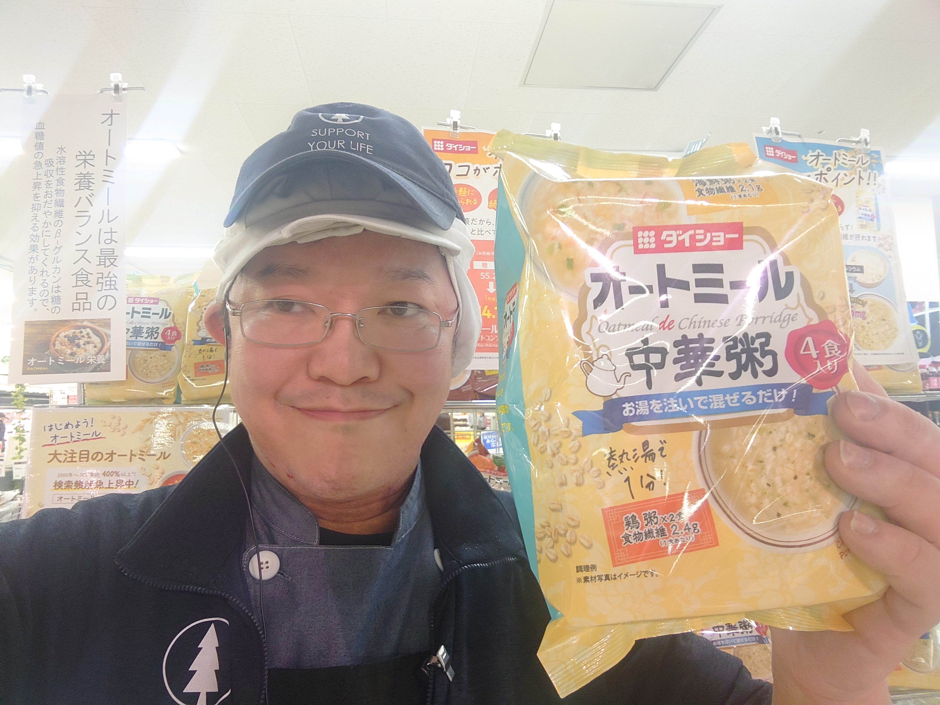 おはようございます。ミート担当近藤です。お米の代わりにオートミールを使用した、2つの味が楽しめる中華粥です。 鶏粥 鶏の旨みに生姜・ごま油を効かせ、パクチー・ピーナッツで風味よく仕上げました。 海鮮粥 エビ・イカ・ホタテ等の魚介とポークの旨みをきかせ、にんにくで風味よく仕上げました