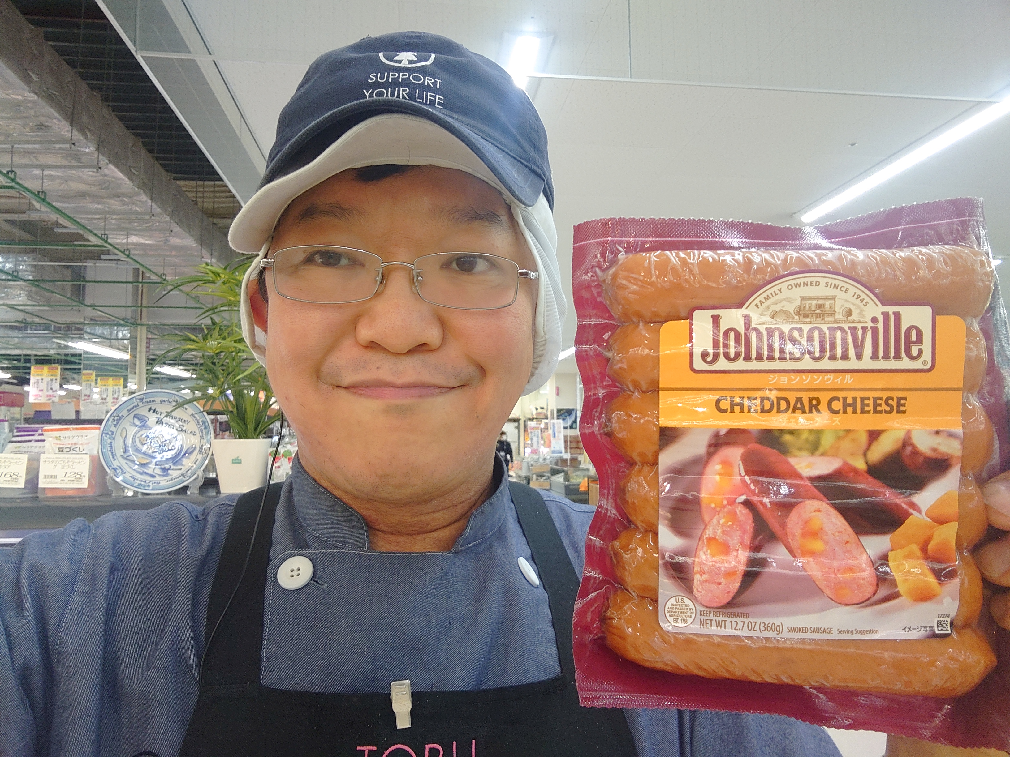 おはようございます。ミート担当近藤です。香ばしいスモークタイプソーセージの中に、アメリカ屈指の酪農州であるウィスコンシン産のナチュラル・チェダーチーズをちりばめました。チェダーチーズは、口に入れれば溶けやすく旨みが広がるのが特長です。ジューシーな肉汁にとろけるチーズが絡み合う絶妙のハーモニー。深みがコクを出したい料理でお楽しみください。