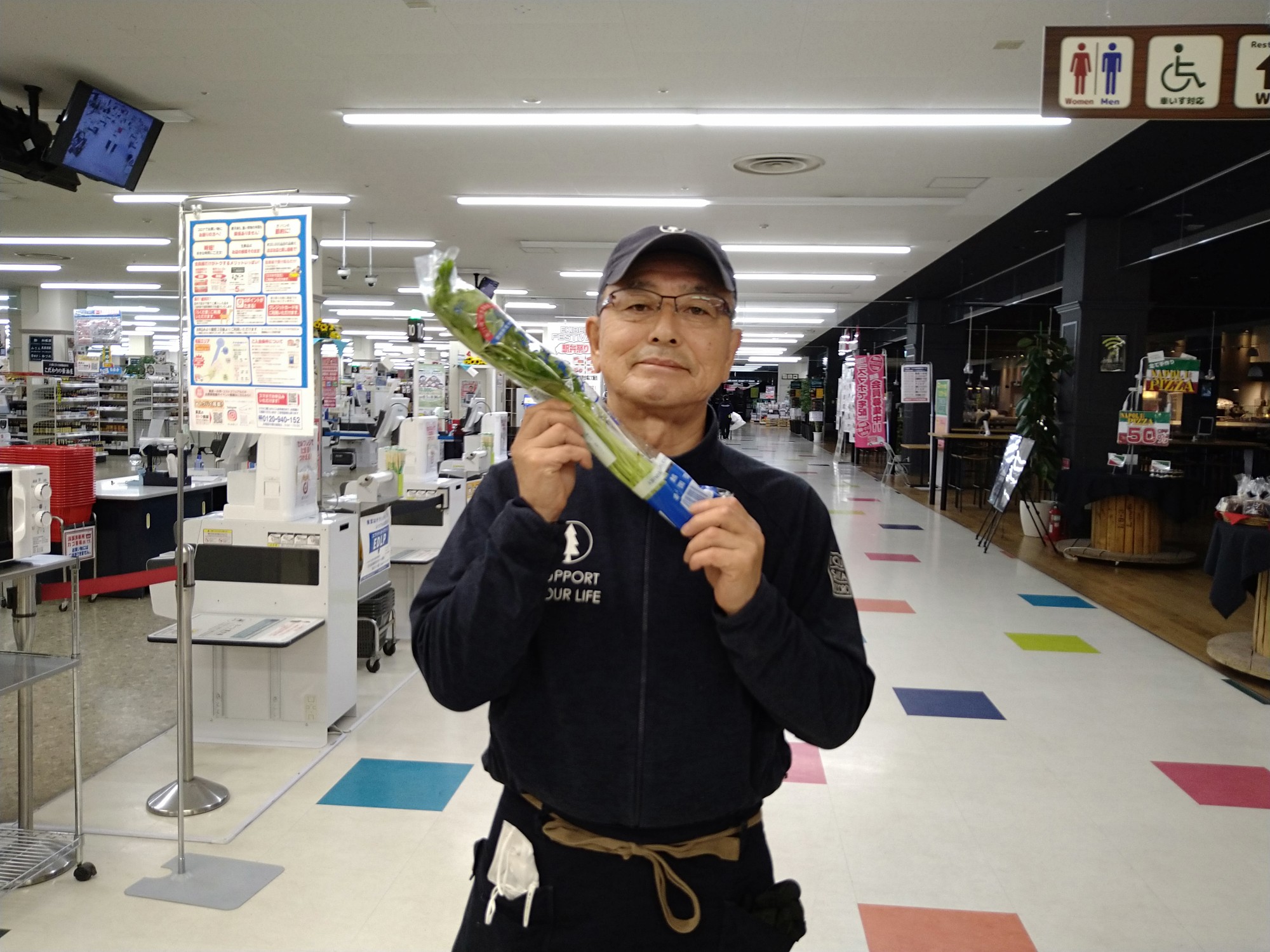 おはようございます。青果コーナーでは、埼玉産糸みつば1袋99円(本体価格)にて販売しております。薬味やのりまき、天ぷらなどにどうぞお召し上がりください。