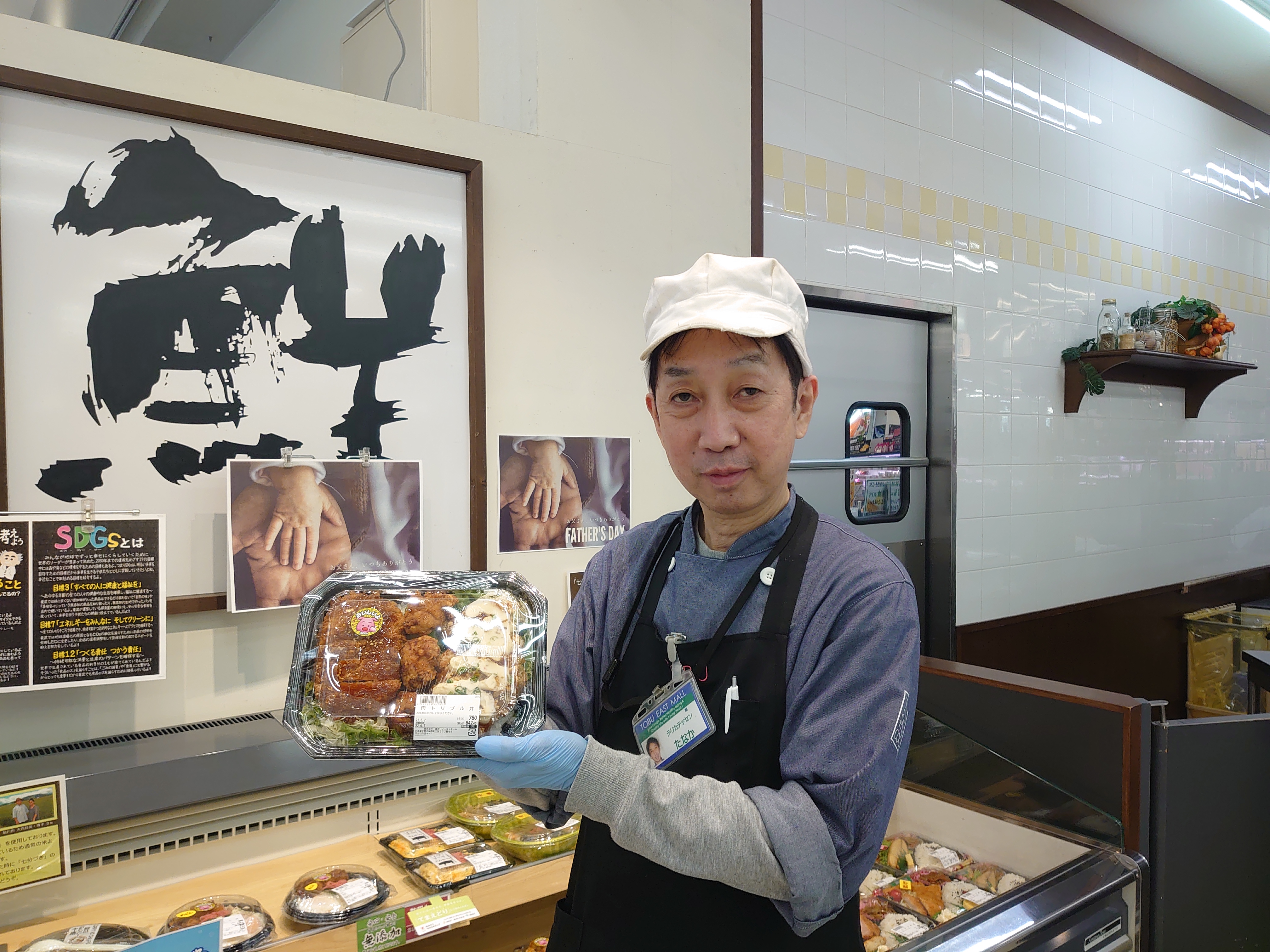 おはようございます。惣菜担当田中です。メンチカツ、甘辛チキン(タルタルソース)、唐揚げと3種ありまして、どんぶり好きな方には3つの味を楽しめていいですね。