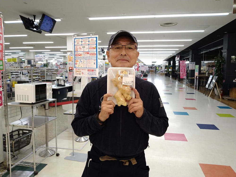 おはようございます。青果コーナーでは、高知産新生姜100g当り198円(本体価格)にて販売しております。甘酢や焼酎に漬けたり、薄切りにして甘辛く煮つけたりと、色々とお使いいただけます。どうぞ御賞味ください。