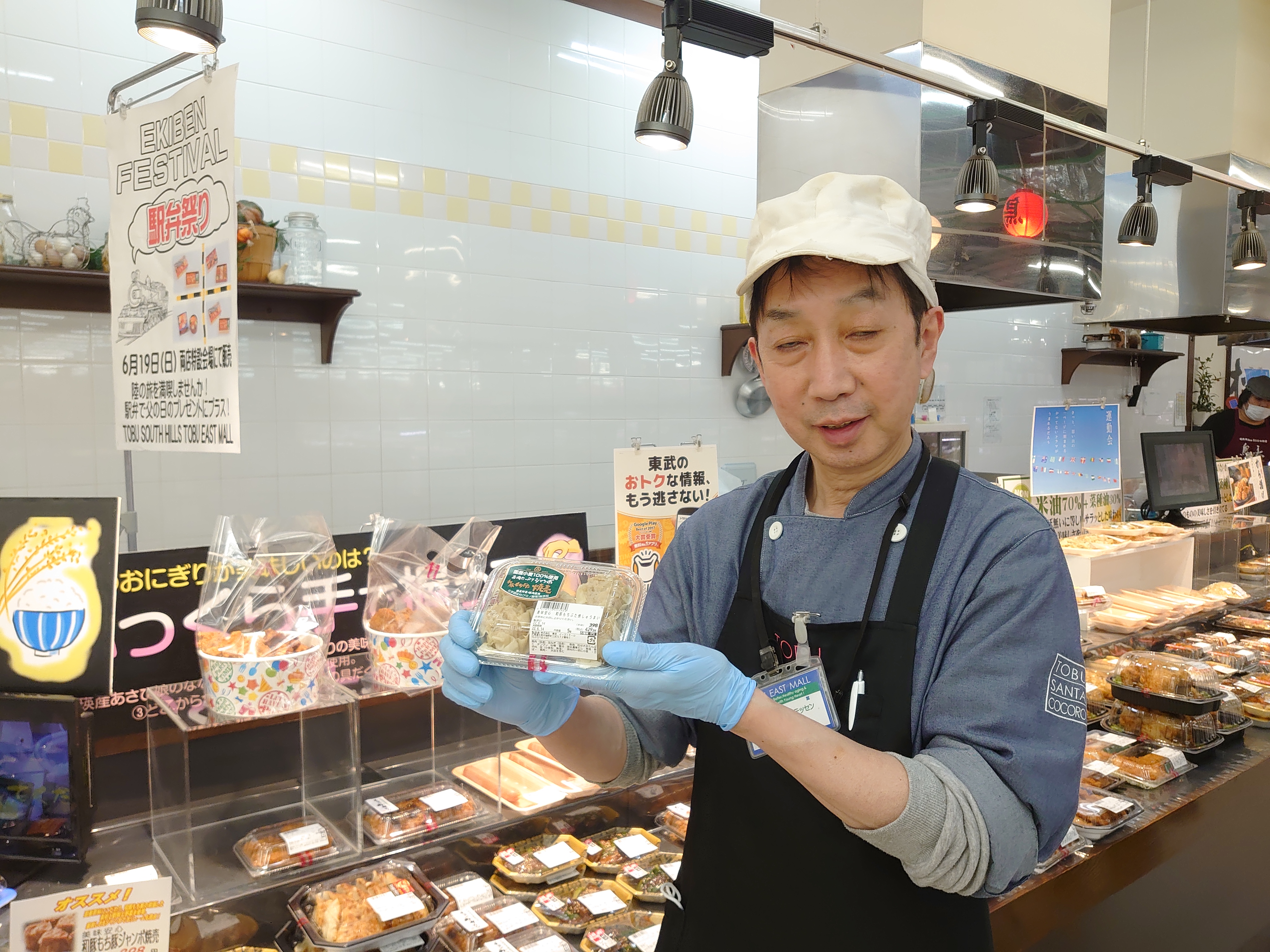 おはようございます。惣菜担当田中です。国産原料にこだわり、和豚もち豚の厳選した素材と新鮮な野菜を使用。美味しさもジャンボでボリュームも満点です!