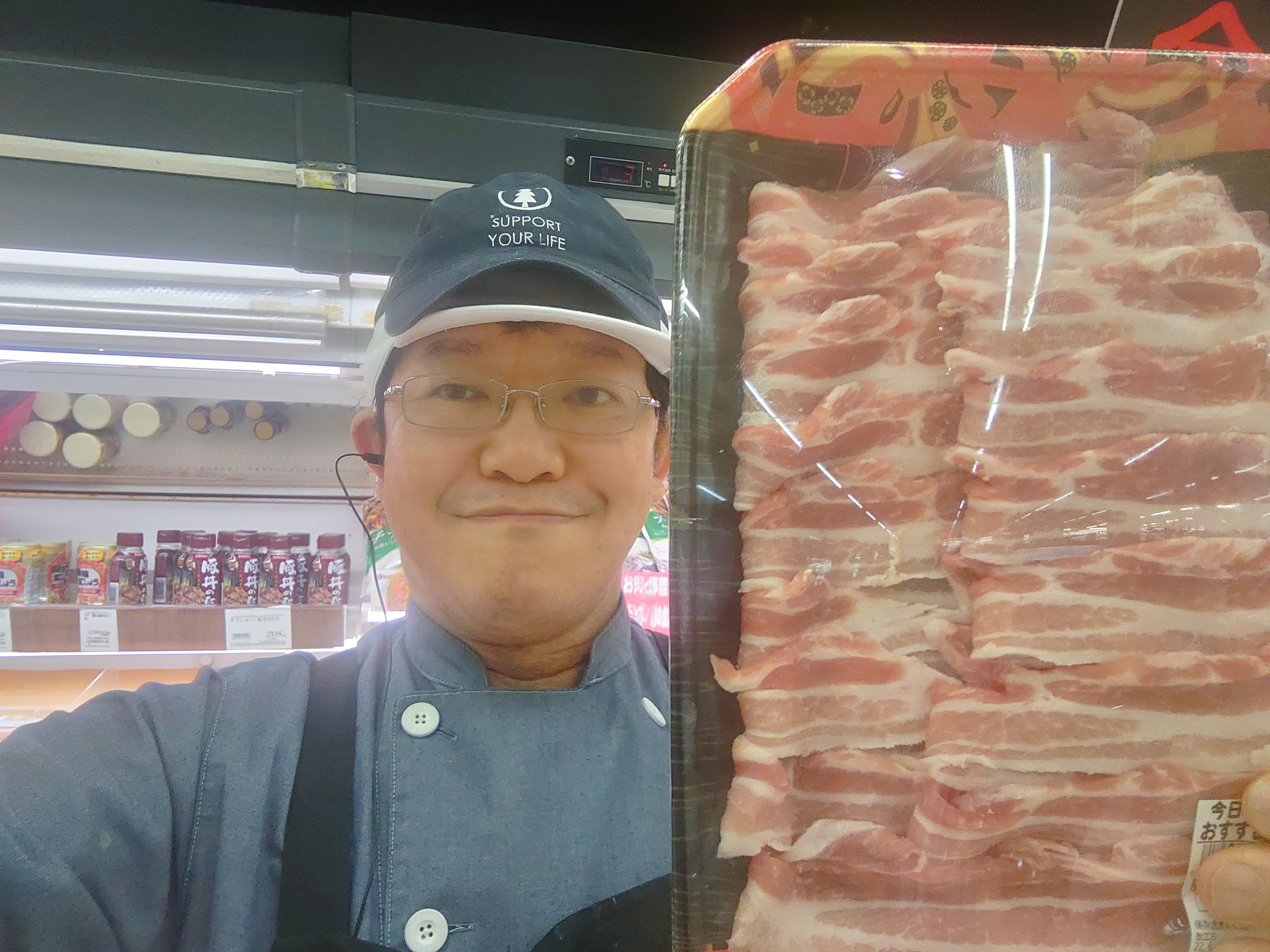 おはようございます。ミート担当近藤です。使用用途の一例と致しまして薄切り豚バラ肉チャーシューで豚バラ薄切り肉を使うから煮込み時間も短くて柔らかな仕上がりです。