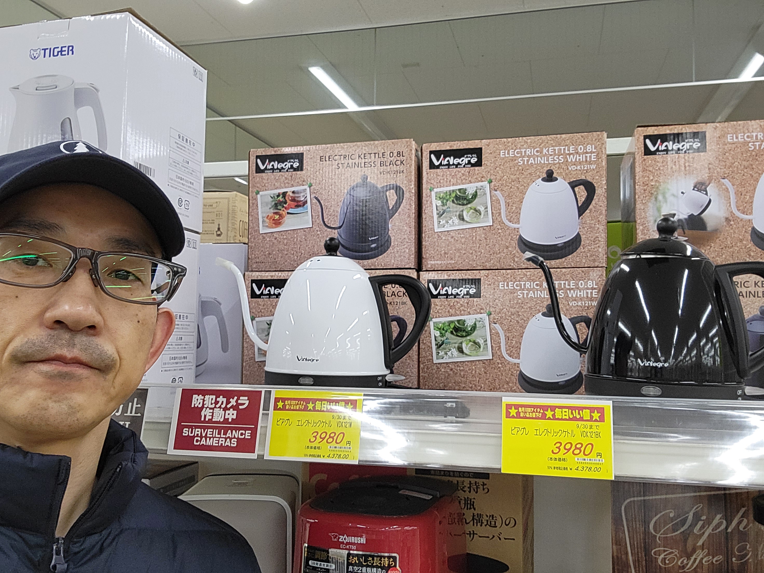 家電コーナーからは、ドリップポットタイプの電気ケトル!ビアグレ エレクトリックケトル 0.8Lです。価格は3980円です。是非お買い求めくださいませ。