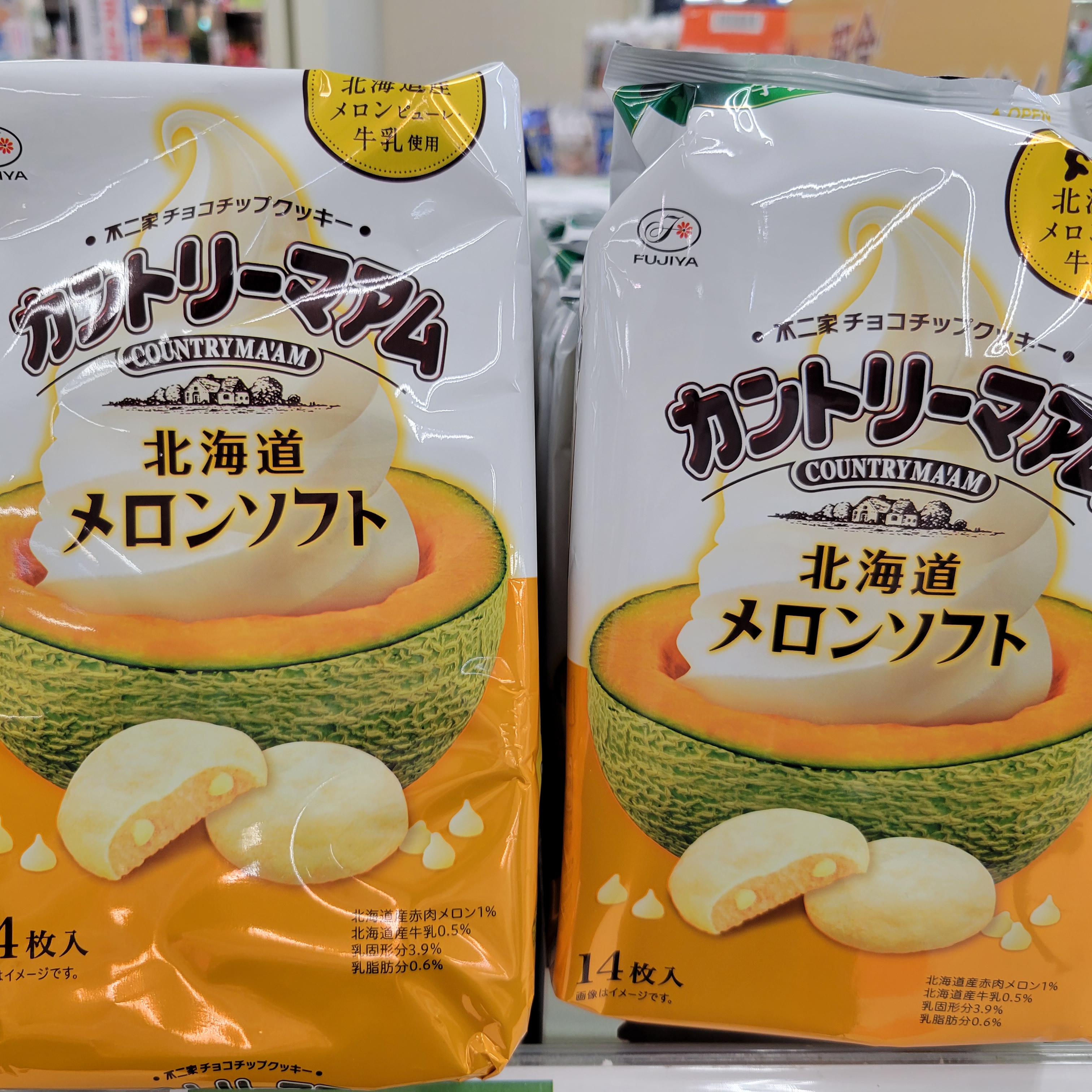 食品コーナーからは、新発売!不二家 カントリーマアム 北海道メロンソフト 14枚入りです。北海道産メロンピューレ・牛乳使用 価格は238円です。是非お買い求めくださいませ。