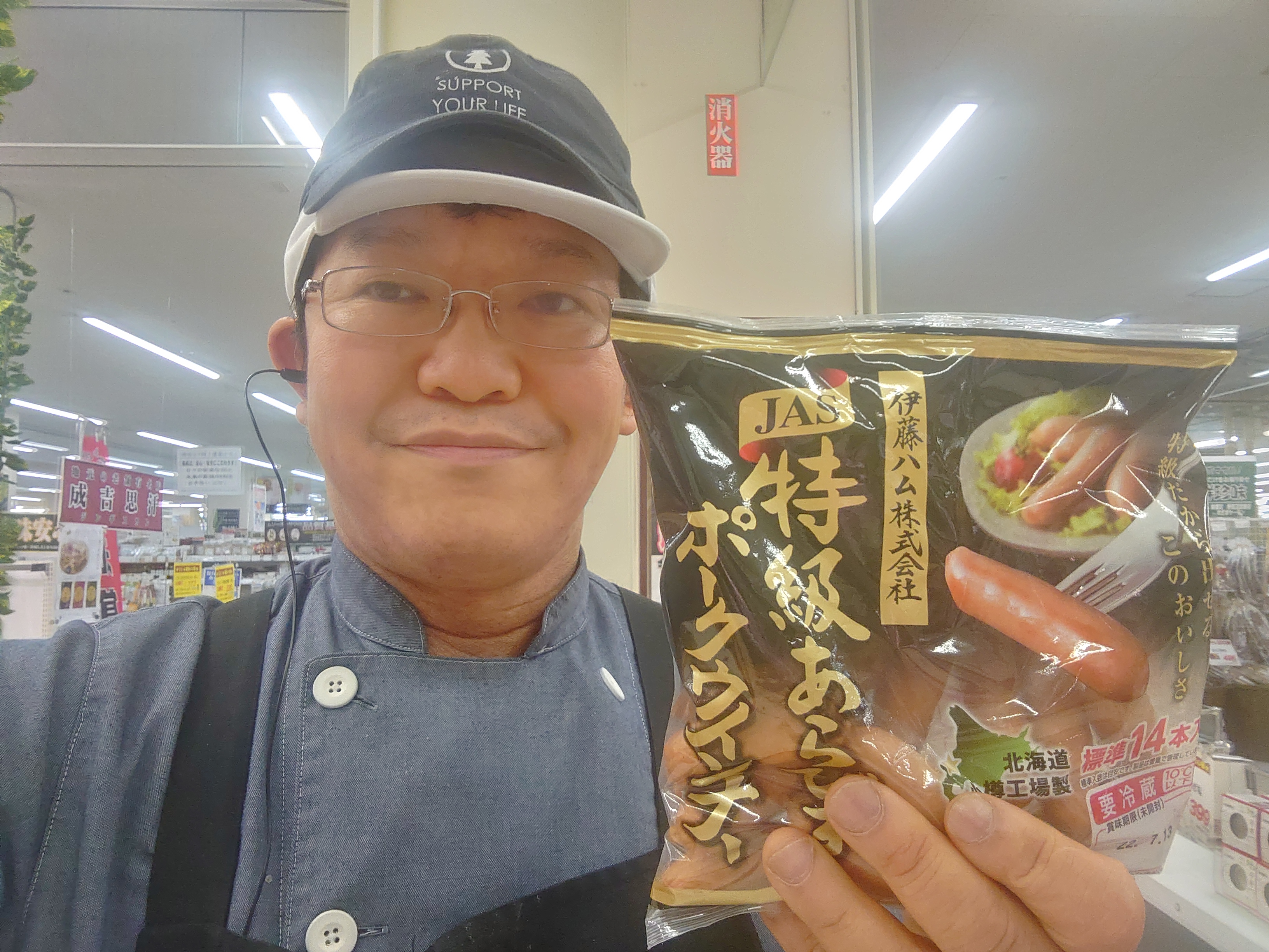 おはようございます。ミート担当近藤です。JAS特級で、しっとりとしたあらびき食感のウインナーです。原料肉は豚肉のみを使用しているので、噛むほどに旨みが広がる満足な美味しさです。