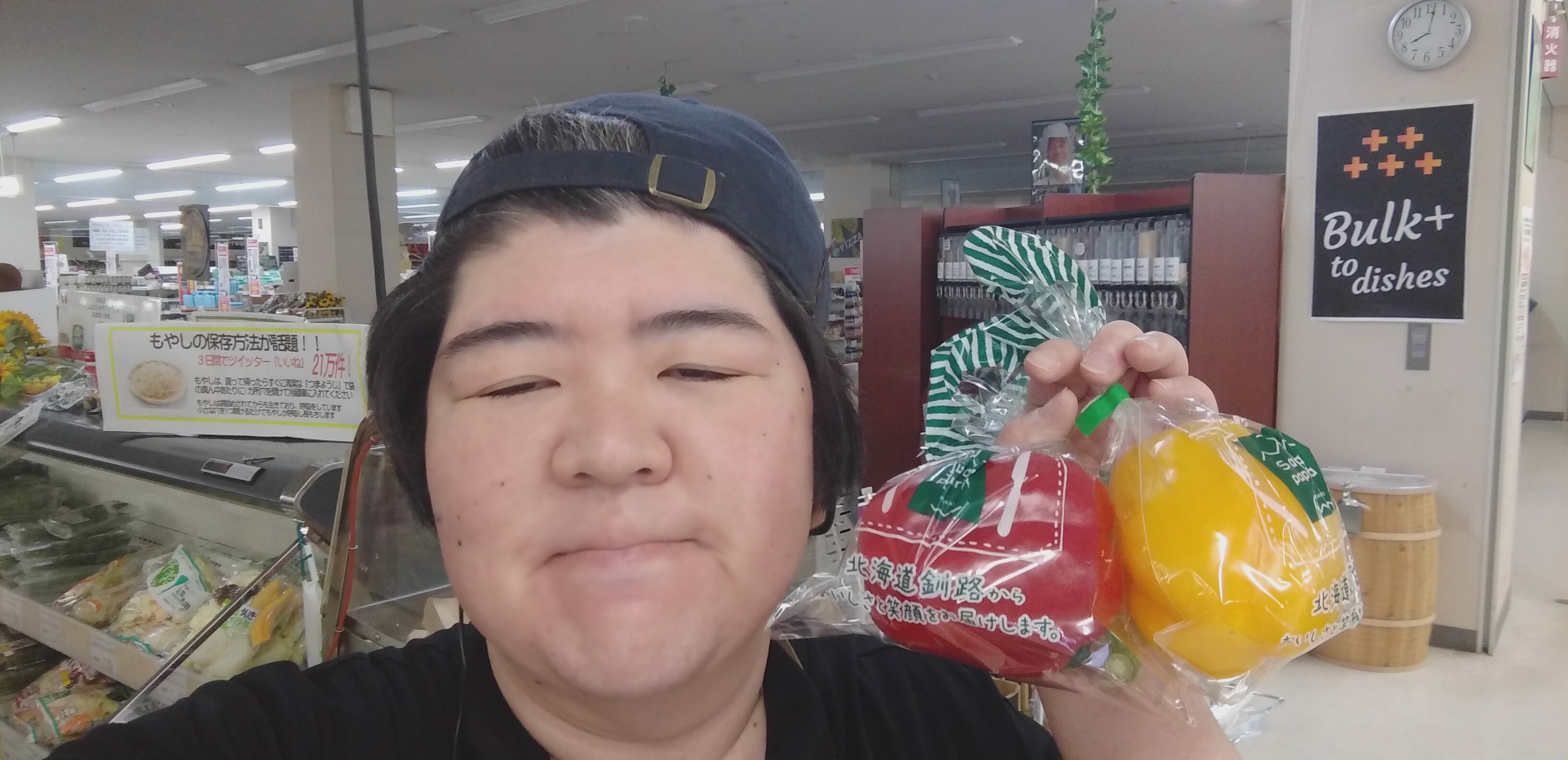 おはようございます。青果担当奥瀬です。本日の青果コーナーからのオススメは、釧路産のパプリカです。食卓の彩にいかがでしょうか。釧路産パプリカ、1玉250円です。是非ご利用くださいませ。
