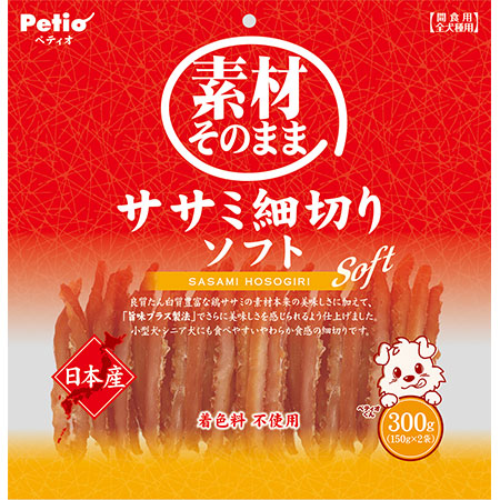 良質たんぱく質豊富な鶏ササミの素材本来の美味しさに加えて、「旨味プラス製法」でさらに美味しさを感じられるよう仕上げました。小型犬・シニア犬にも食べやすいやわらか食感の細切りです。姫路工場(自社工場)で心を込めて丁寧に作りました。日本産。着色料不使用。便利な2袋分包。