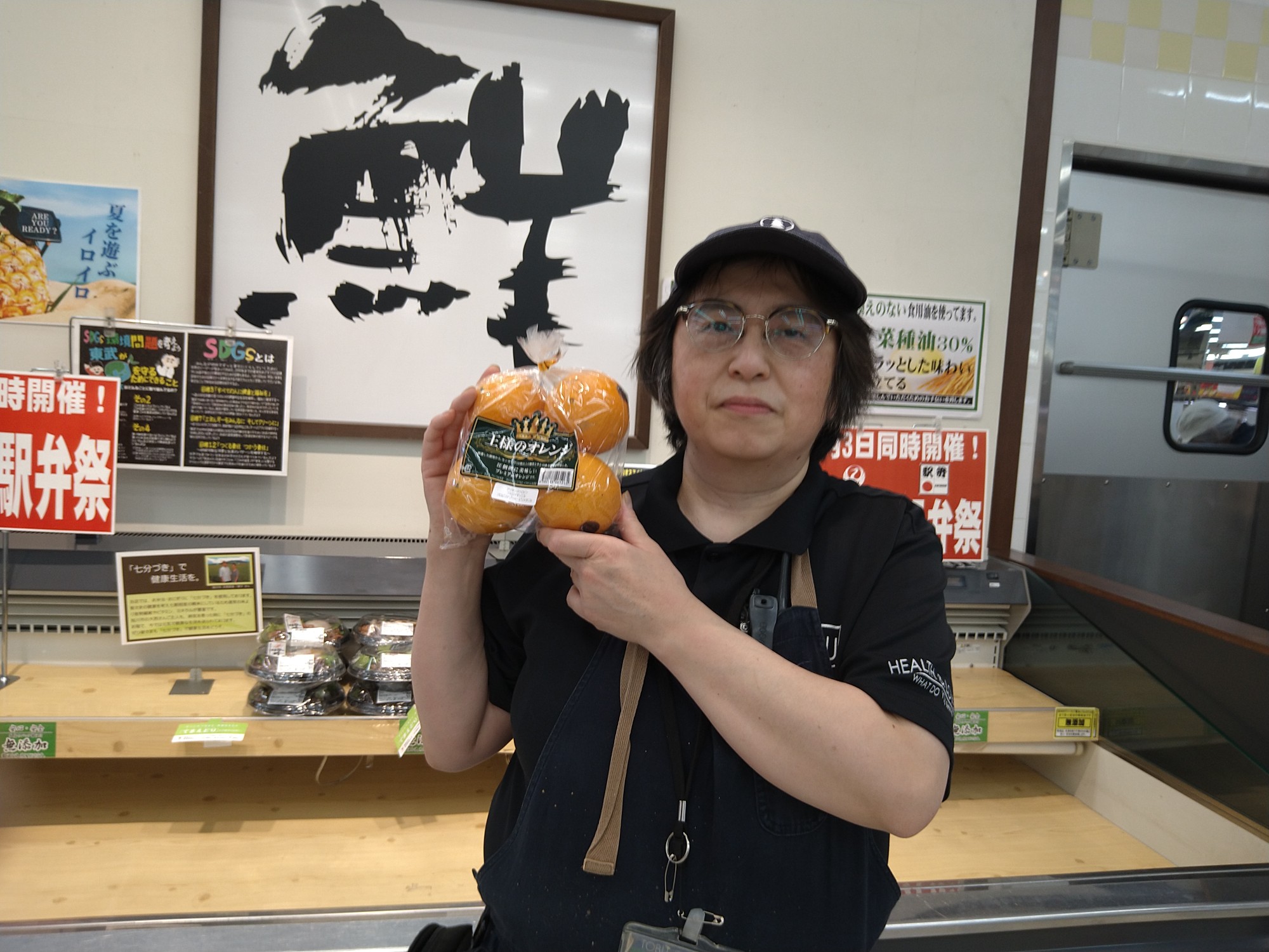 おはようございます。青果コーナーでは、アメリカ産王様のオレンジ4個入り1袋498円(本体価格)にて販売しております。センサーで12度以上の糖度とキレのある酸味を吟味しました。