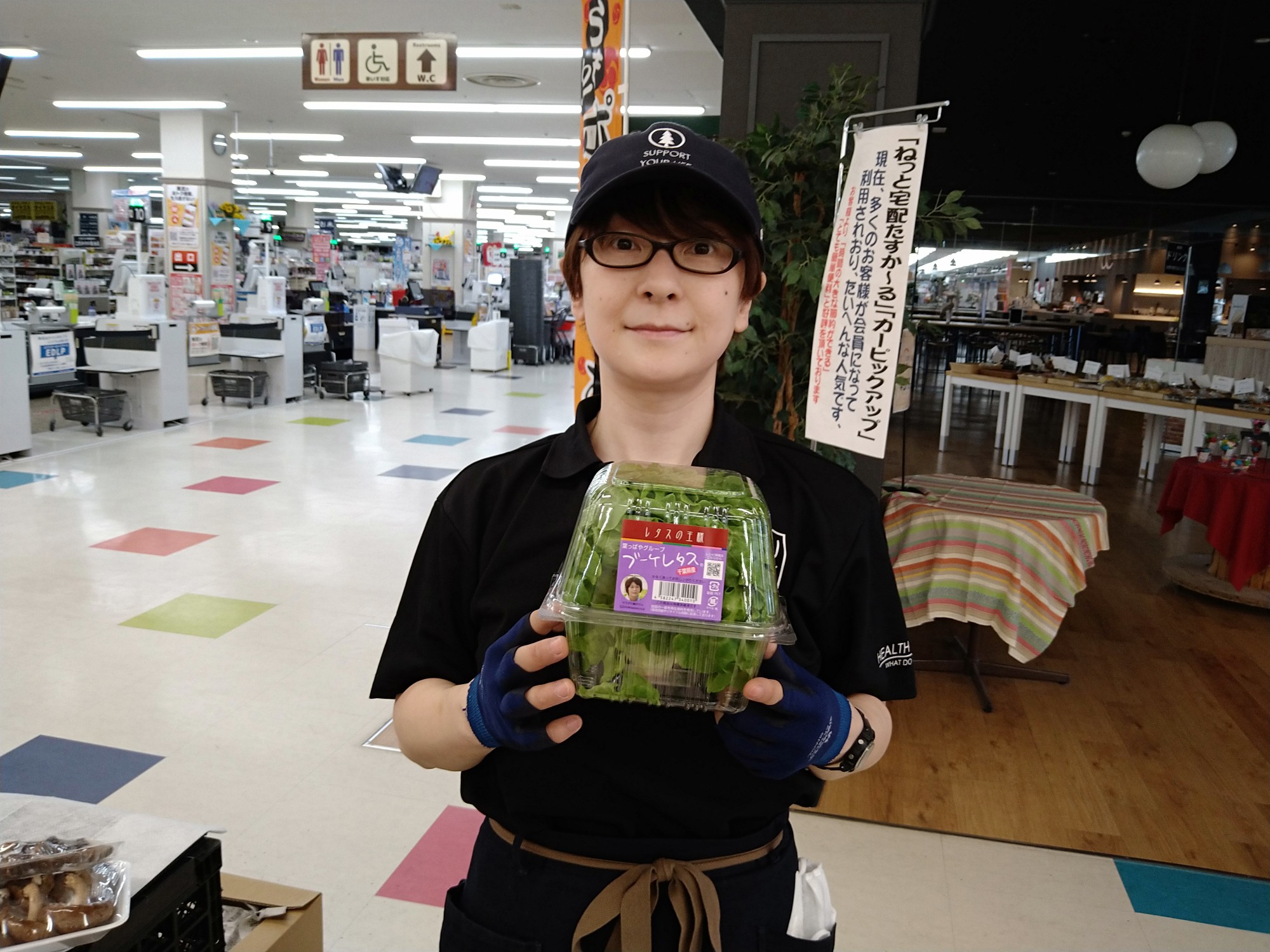 おはようございます。青果コーナーでは、千葉産ブーケレタス1パック198円にて販売しております。サラダはもちろん、焼肉や焼き魚などのお供、和え物にいかがですか?どうぞお召し上がりください。
