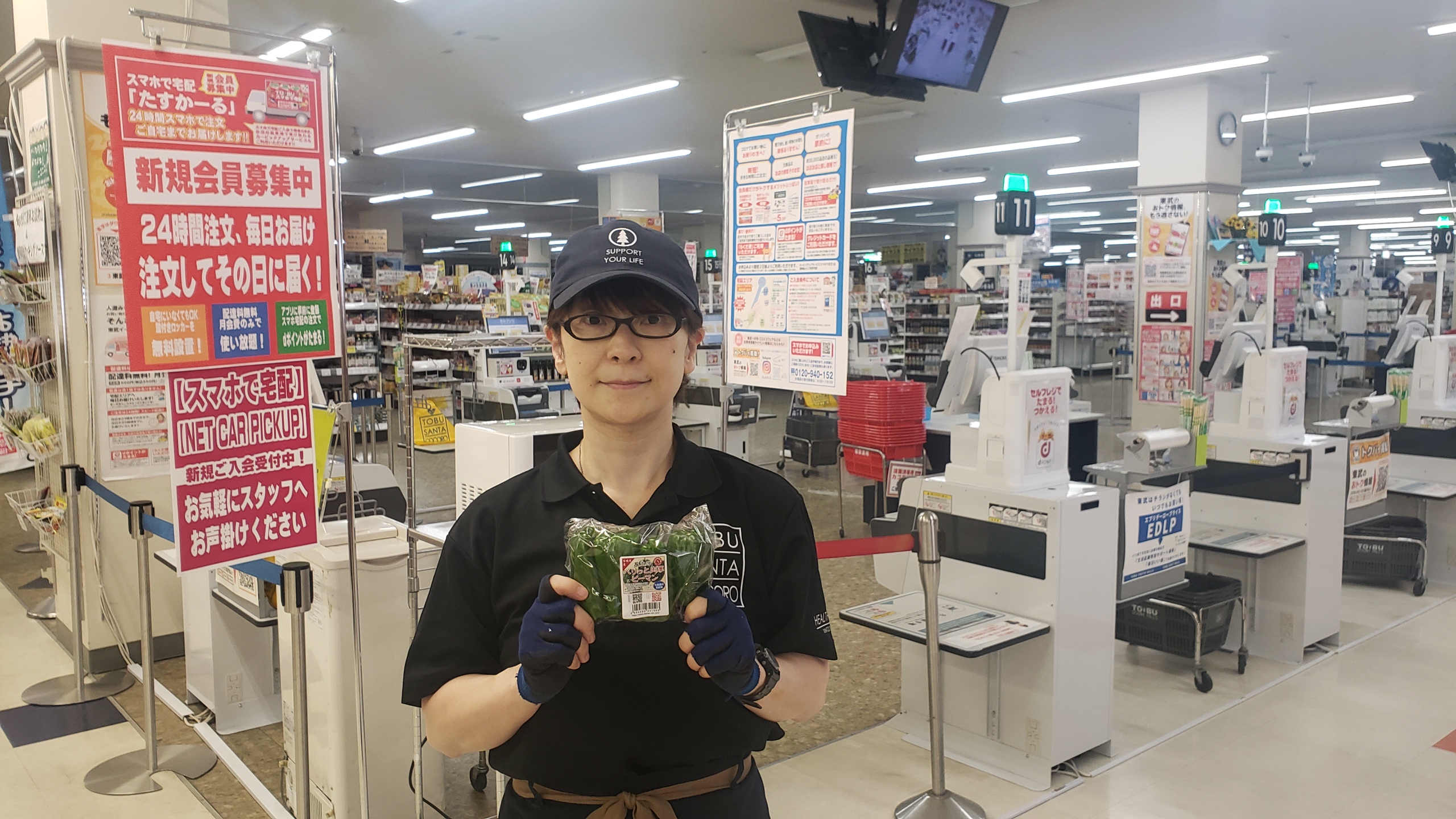 青果コーナーのオススメ!宮崎産のピーマン。特別栽培で農薬使用量が少ないです、1袋198円にて販売します
