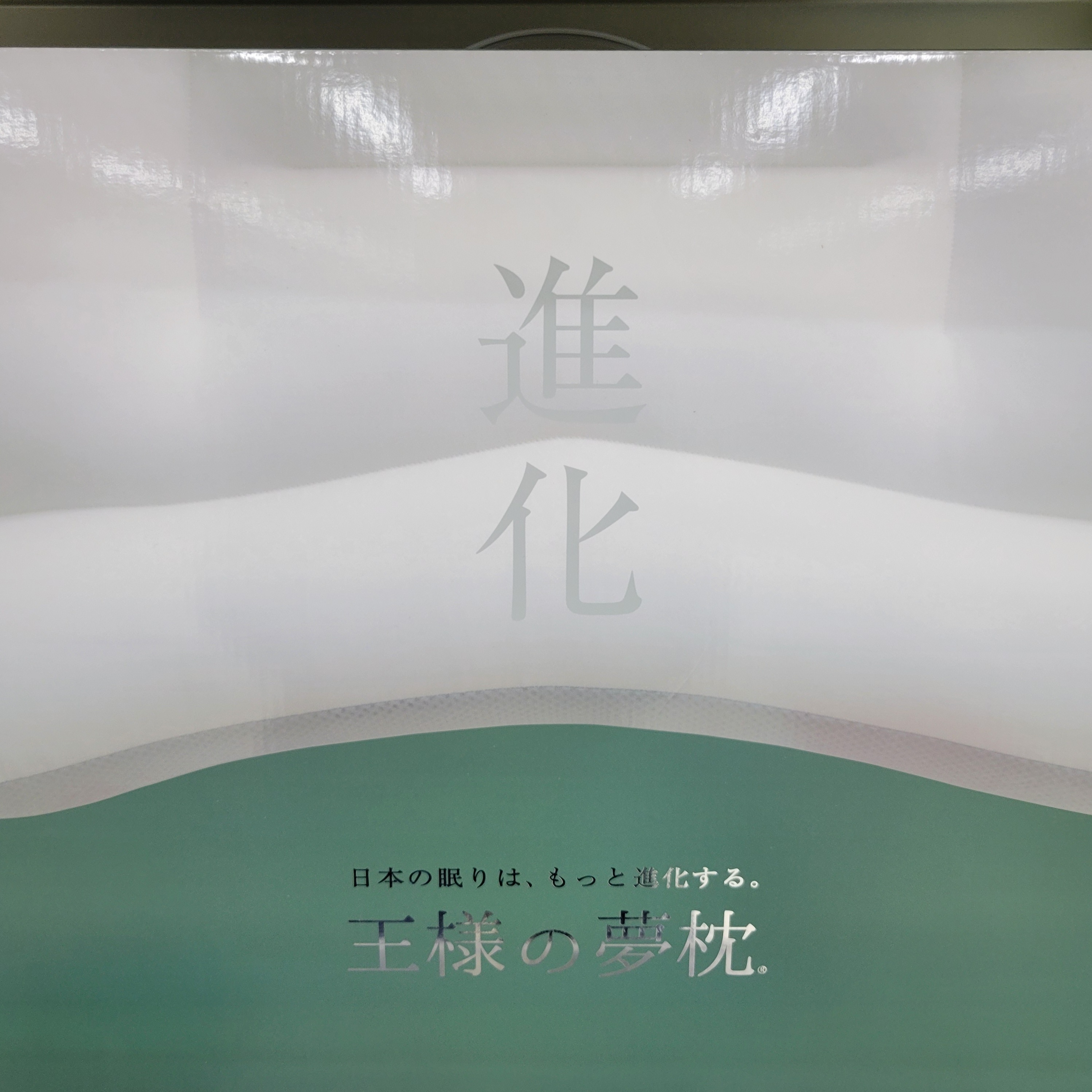 インテリアコーナーからは、おすすめ!枕!新・王様の夢枕です。超極小ビーズの寝心地はそのまま、さらに高まった脛椎へのフィット感。サイズ幅62cm×40cm 価格は6800円です。是非お買い求めくださいませ。