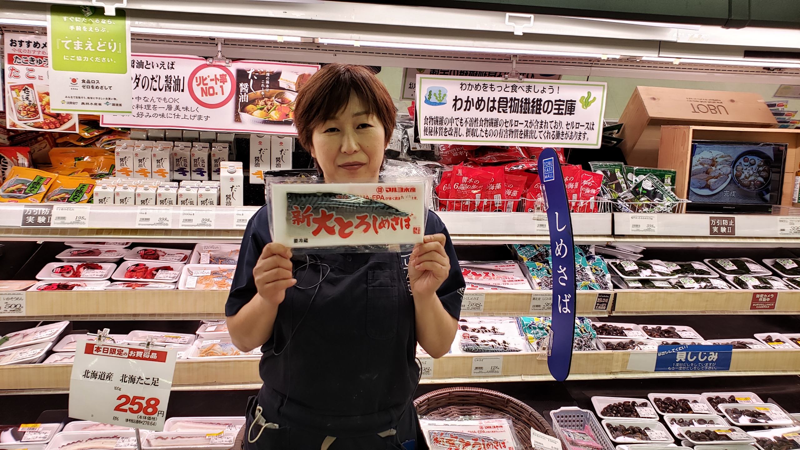 本日の鮮魚コーナーからのおすすめです。 新大とろ〆さば1パック398円(税抜き)となっております。暑い日にさっぱりといかがでしょうか…是非ご来店ご利用お待ちしております