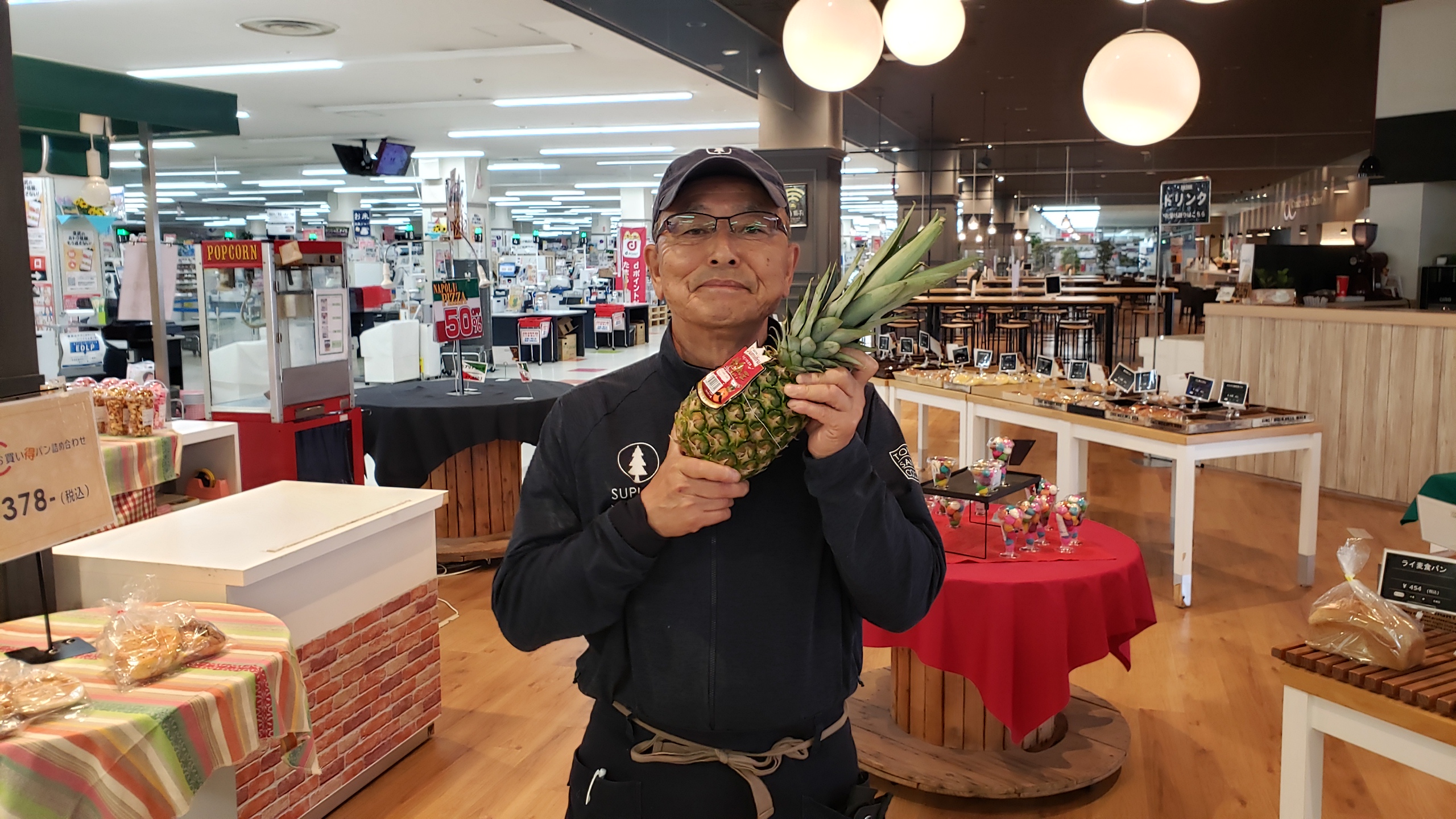 青果コーナーオススメ!フィリピン産甘熟王パインがお買い得です。1玉299円にて販売します