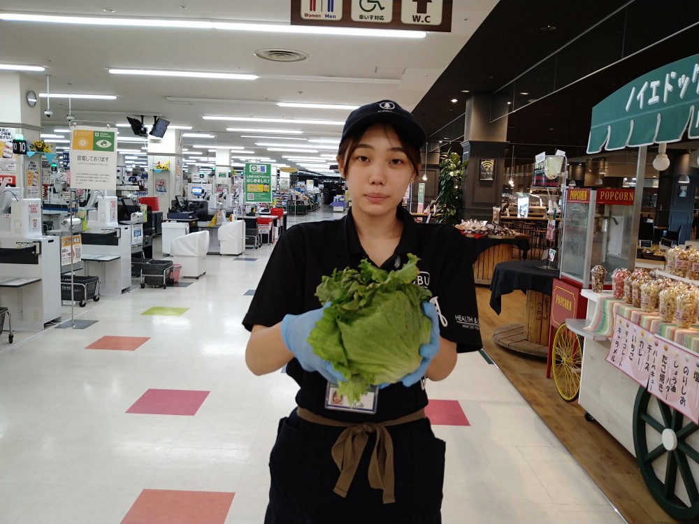 おはようございます。青果コーナーでは、お1人様2点限り北海道産レタス1玉129円(本体価格)にて販売しております。チャーハンやサラダなどいかがですか?どうぞお召し上がりください。